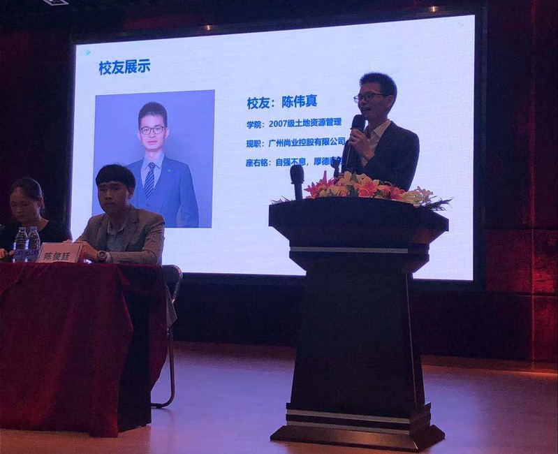 陈伟真总经理,向同学们分享了个人从就业到独自创业的经历和公司的成长历程。他认为,创业成功首先要基于自己的优势,其次就是要找到合适的创业平台。站得高才能望得远,站在巨人的肩膀上能更接近成功。他表示我们身边也不缺乏励志的创业故事和案例,我们要勇于借鉴和尝试,并强调钱永远都不是第一位的,第一位的是自己的视野、胸怀、格局。成功不是一蹴而就,只要坚持探寻、注重时间和经验的积累,谋定而后动,你就是赢家。