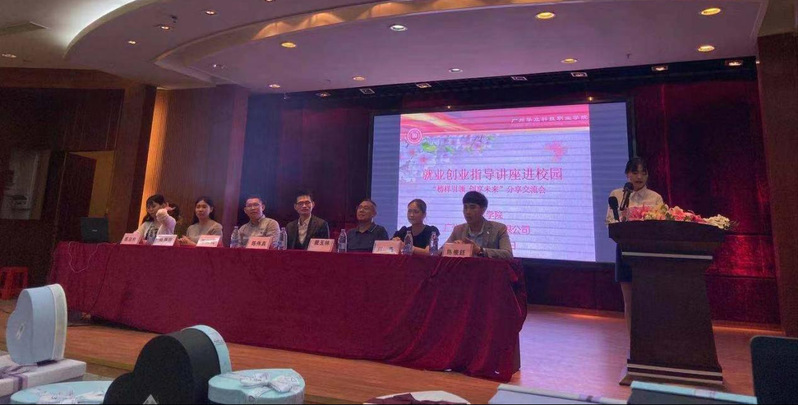 5月25日下午,由广州华立科技职业学院主办,广州市高校就业指导中心协办的主题为“榜样引领·创享未来”优秀校友创业分享的“阳光就业·事业扬帆”就业创业指导进校园公益讲座在东区图书馆1号报告厅举行。城建学院戴玉林副院长、校外教学刘燕副主任以及广州尚业控股有限公司陈伟真总经理(创始人)等7人,以及城建学院2020级约200名学生参加了此次分享交流会。