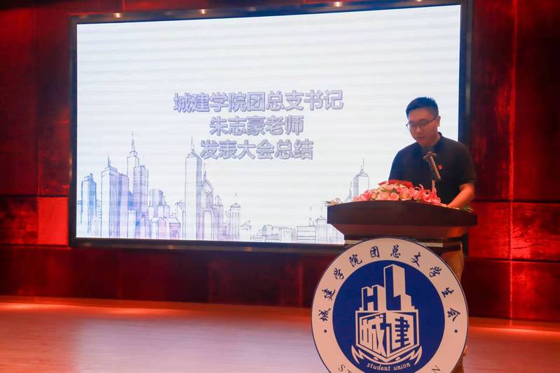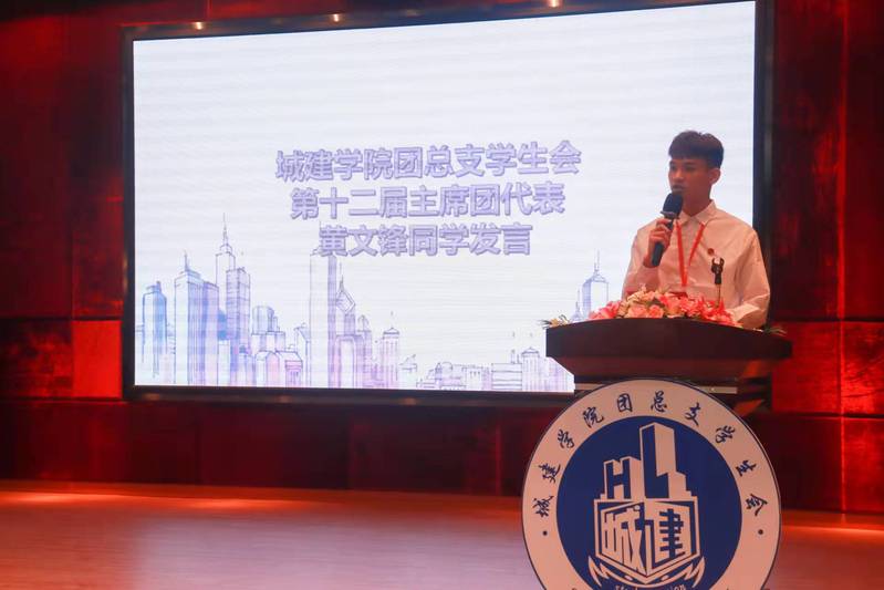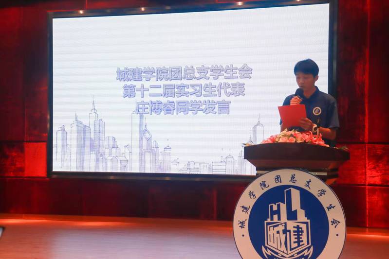 再由城建学院团总支学生会实习生代表庄博睿同学进行发言,他讲大学是人生最重要的阶段,需要互相团结,目标坚定,树立理想与抱负,去描述我们无悔的青春。