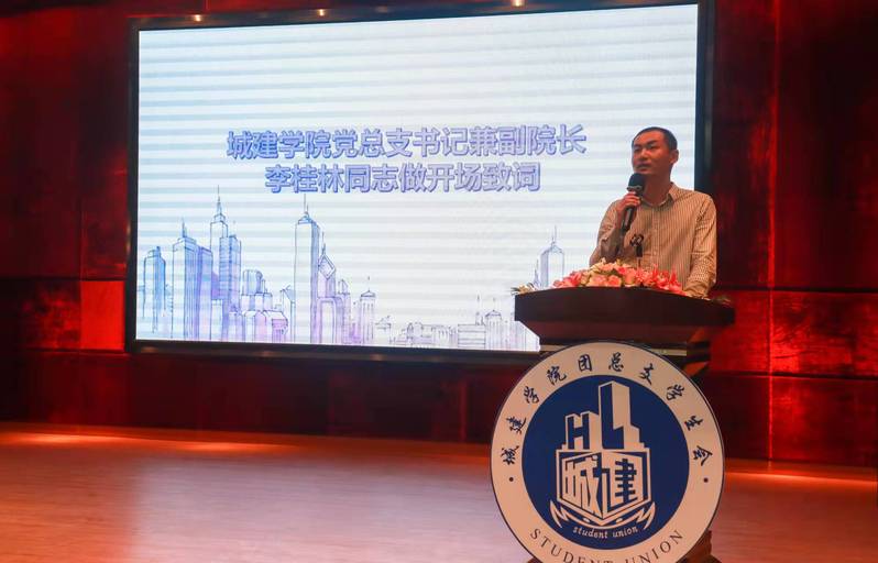 2021年10月14日下午19:30在东区图书馆一号报告厅举行城建学院团总支学生会第十二届动员大会。出席本次大会领导嘉宾有:城建学院李桂林院长、城建学院朱志豪书记、电力学院钟颖书记、艺传学院梁安达、财经学院郑国庆书记、管理学院陈媛书记、生活指导科曹广福老师、健康学院丁娟萍书记、计算机学院温海俊书记、国协刘文涛老师、办公室实习干部姚泽明老师、实习辅导员肖楚军老师、实习辅导员陈雨闲老师、往届主席团师兄师姐还有城建学院第十二届团总支学生会全体成员。