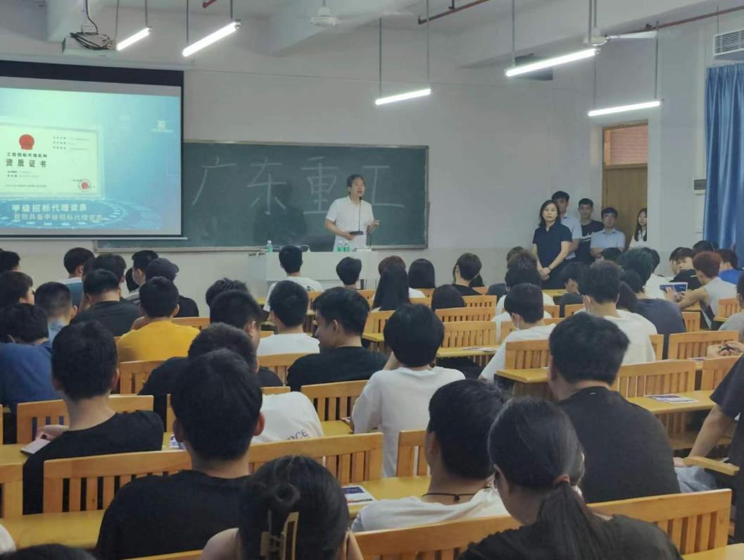 宣讲会即将开始时,播放了关于“广东重工”的视频宣传片。为了让同学们能更好的了解广东重工各方面情况,霍真珍经理也对广东重工企业文化进行了详细的介绍。随后,优秀校友何宗钊同学为大家分享了在广东重工工作的感受。何宗钊同学是我校2020级的学生,在2022年7月进入广东重工,他诚恳的向同学们介绍了广东重工有着公平的工作环境,在同等条件下,员工们只有通过自己的努力才能不断取得进步。