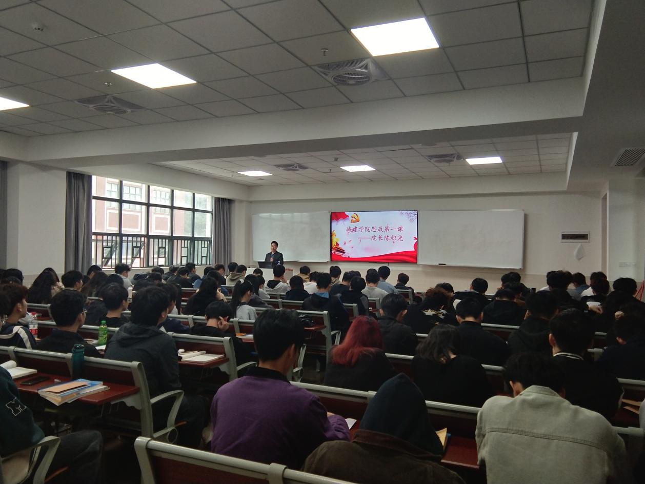 2024年3月18日晚,广州华立科技职业学院城建学院院长陈积光,党总支书记隗波扬分别在2教204、2教403课室给22级、23级学生讲授“思政第一课”。