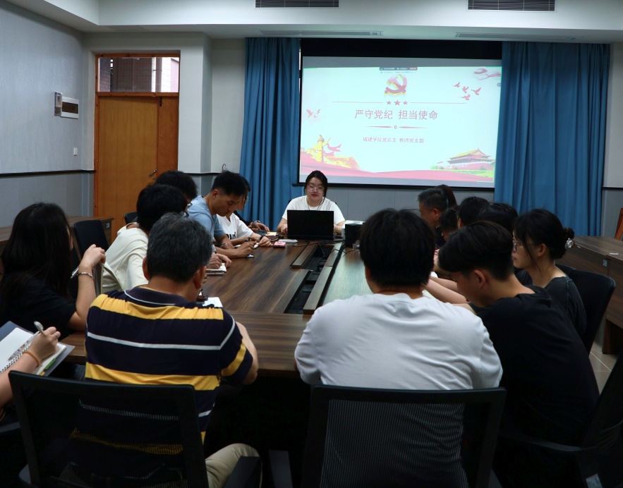 为深入学习贯彻习近平总书记关于党纪学习教育的重要讲话和重要指示精神,推动党纪学习教育走深走实,扎实开展党纪学习教育工作,教育引导广大教师党员学纪、知纪、明纪、守纪。2024年6月12日,城建学院教师党支部以《严守党纪,担当使命》为题开展了党纪学习教育专题党课,支部书记刘昊茹同志主讲,全体