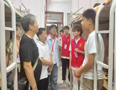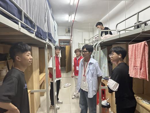 在走访宿舍过程中,领导们给新生带来了满满的关怀与温暖,亲切询问同学们对宿舍的满意度,空调效果如何,生活是否习惯,学校的饭对不对口味,有没有给家里报平安了。同时提醒新生要注意校园安全、预防网络诈骗,并指出,学校是同学们温暖的家,若有困难和需求,第一时间寻求老师的帮助,我们都会尽全力为大家排忧解难。