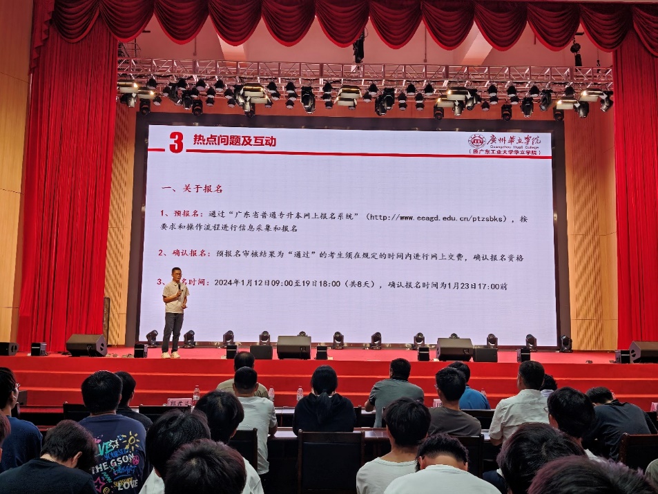 随后,梁培群老师细致解读专升本的最新政策,对专升本的报名条件、考试科目、录取流程等关键环节进行了逐一讲解,引导同学们认清专升本形势,精准合理定位。