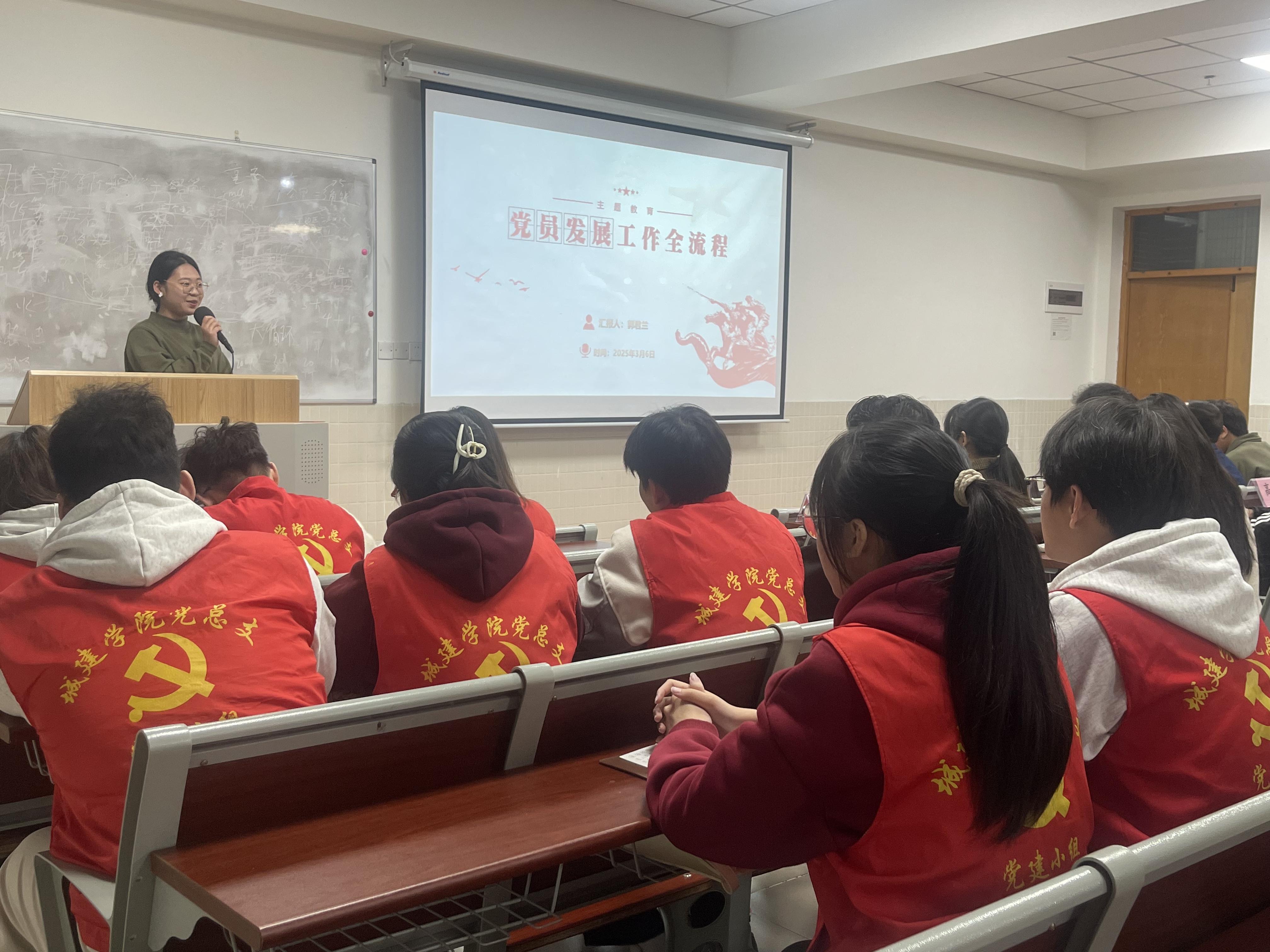 郭君兰同志讲解党员发展流程,共有“五个阶段、二十五个步骤”,和我们分享了党员的权力和义务,我们要始终牢记党的根本宗旨“全心全意为人民服务”。