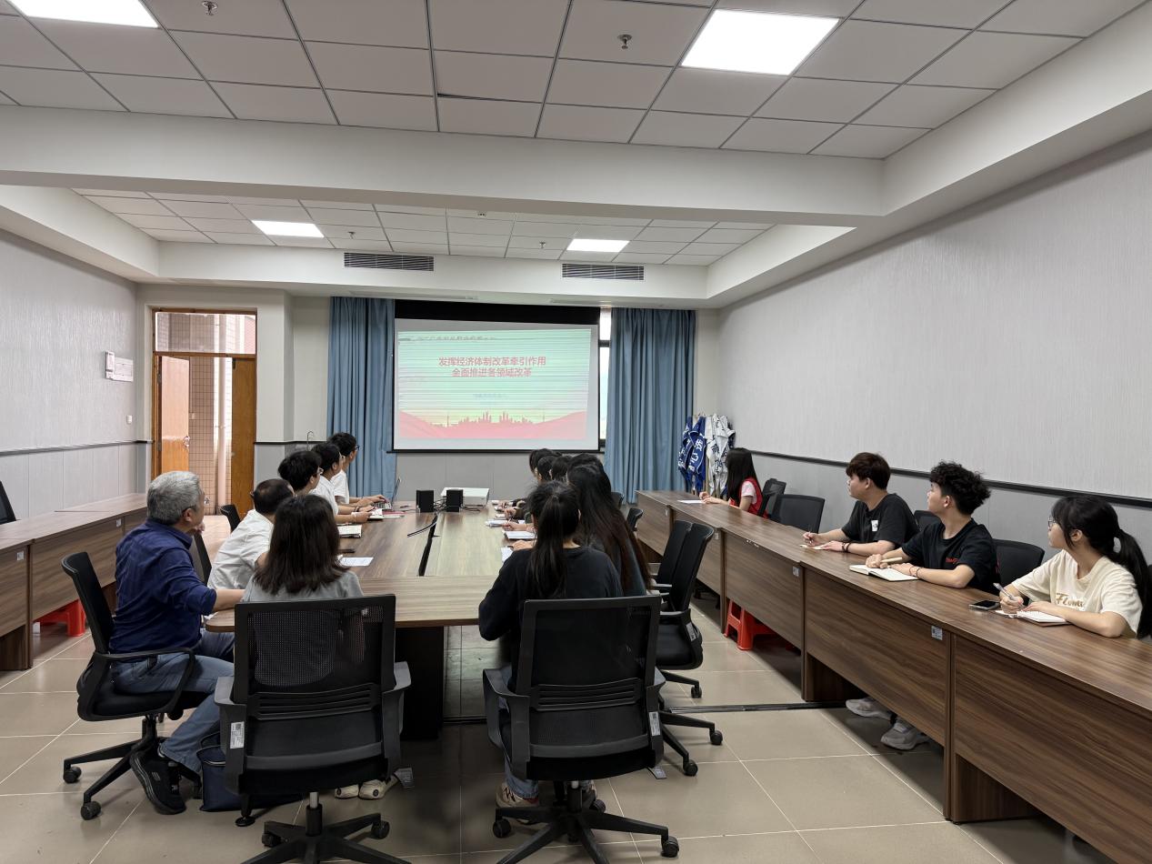 结合学院工作实际,吴毅强书记就贯彻落实经济体制改革精神提出三点要求:一是深化思想认识,准确把握经济体制改革的重大意义。要站在服务国家战略和区域经济发展的高度,深刻理解改革的重要性和紧迫性。二是强化学用结合,精准对接改革发展的实践需求。要求干部既要加强理论学习,又要注重实践探索,切实提高解决实际问题的能力。三是注重成果转化,推动改革举措落地见效。强调要把学习成果转化为推动学院发展的实际成效,实现理论学习与实践创新的良性互动。通过系统推进各项改革,切实把改革红利转化为发展动能,开创学院高质量发展新局面。