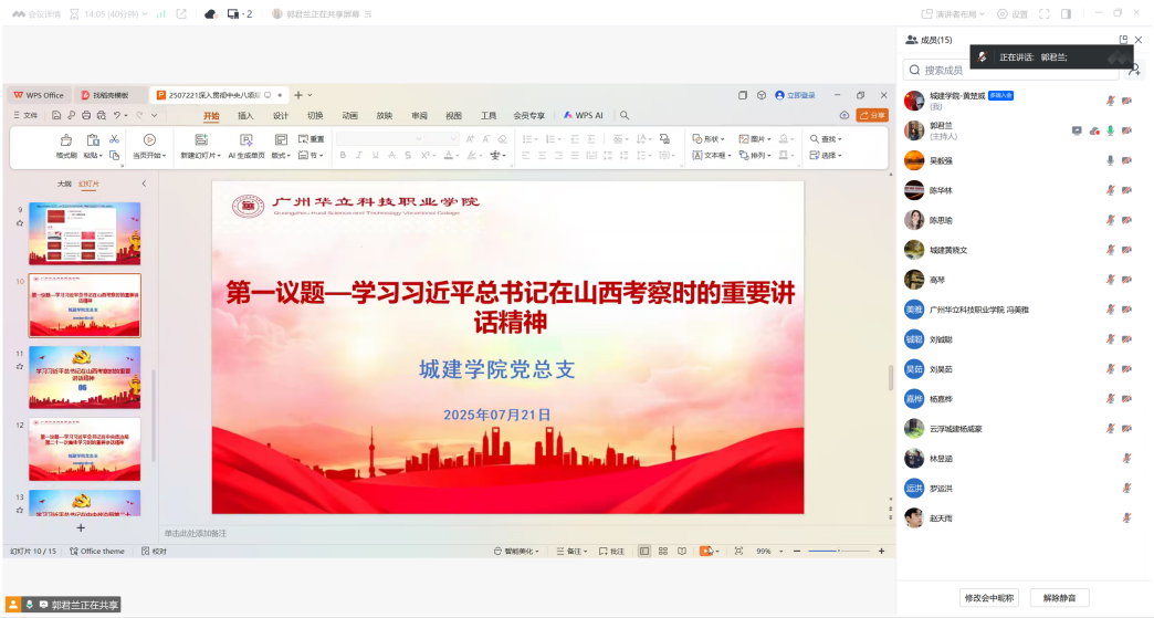 2025年7月21日,城建学院党总支召开深入贯彻中央八项规定精神学习教育推进会。会议以线上形式举行,通过集中学习、案例剖析、工作部署等环节,推动全体师生党员深化思想认识、强化行动自觉。