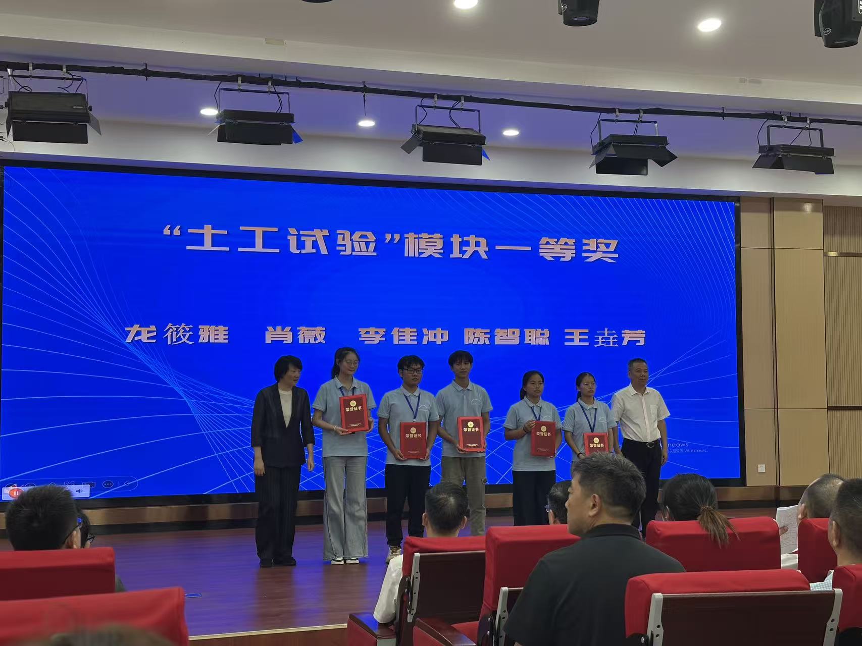 比赛过程中,陈智聪和陆毅伦两位同学沉着冷静,凭借扎实的专业技能和稳定的发挥,在众多选手中脱颖而出。陈智聪同学在试验操作中手法娴熟、精准高效,数据处理严谨细致,展现出了极高的专业水平,最终荣获一等奖。陆毅伦同学同样表现优异,在面对复杂的试验任务时,有条不紊地完成了各项操作,凭借出色的综合表现获得三等奖。指导教师杨俊和刘昊茹在竞赛现场也时刻关注着学生的表现,为学生提供必要的支持与指导,他们的辛勤付出和专业指导为学生取得优异成绩提供了有力保障,也因此荣获优秀指导教师称号。