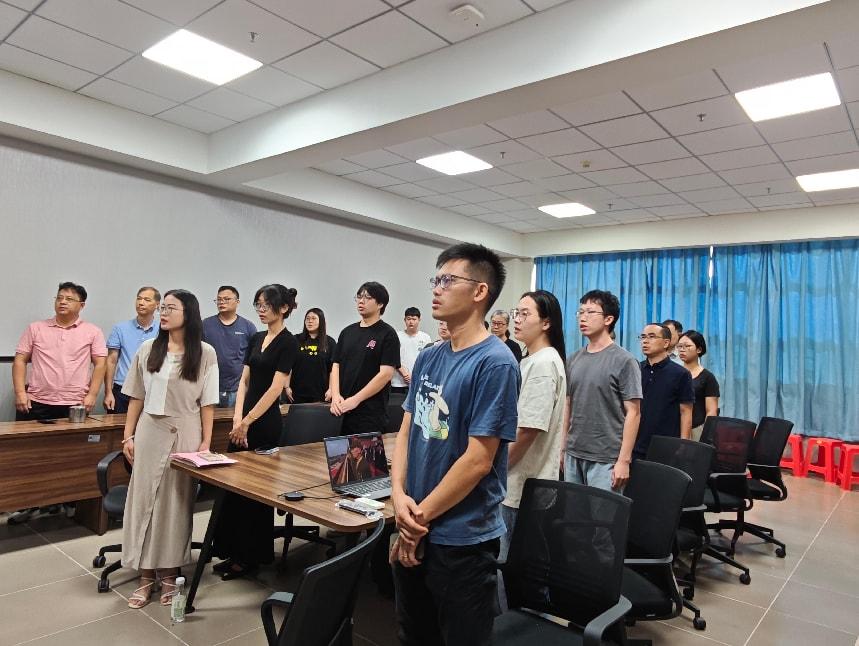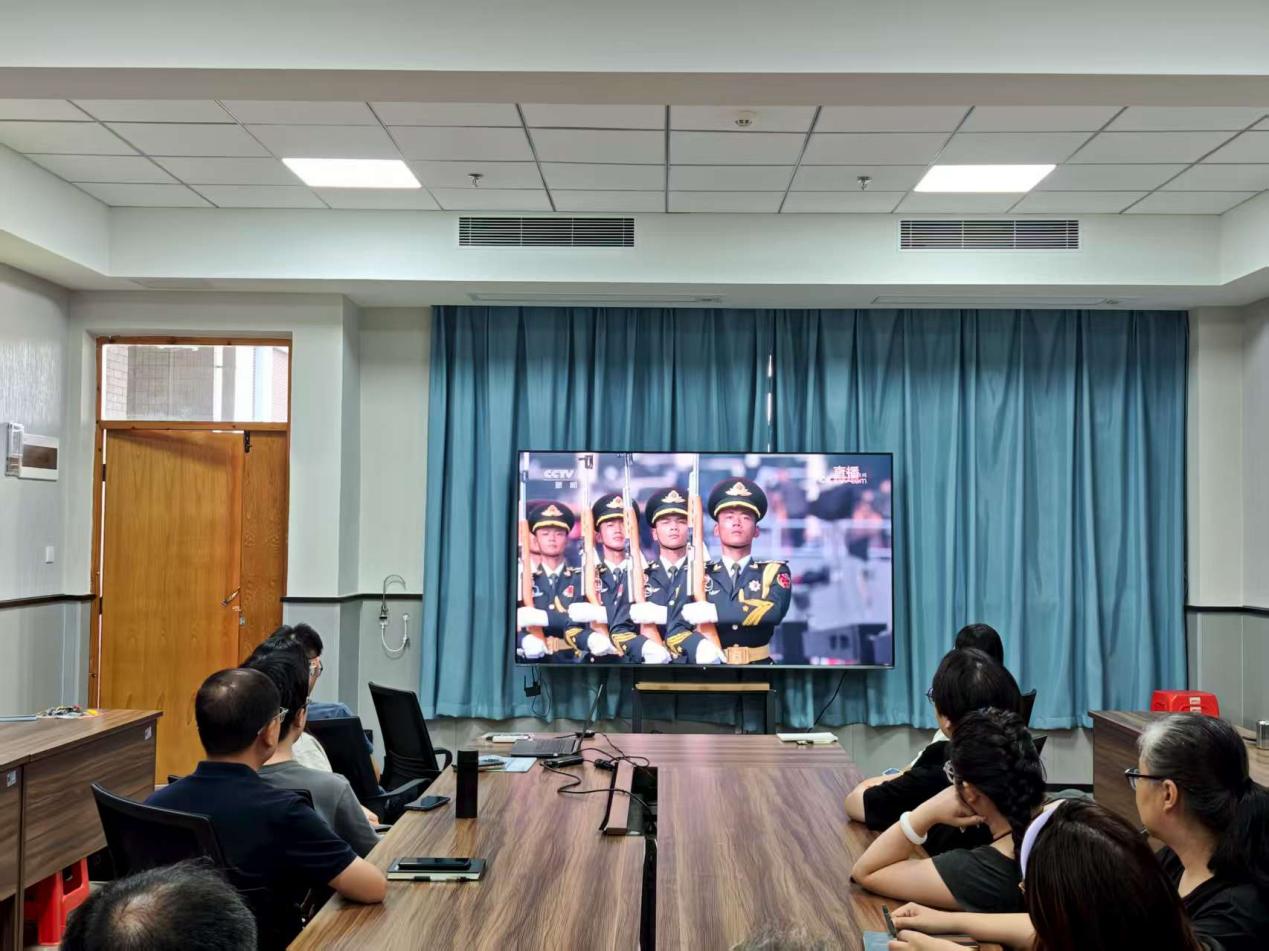 当天上午,城建学院的师生们早早地聚集在学校的会议室、教室等场所,怀着崇敬的心情等待阅兵仪式的开始。当礼炮响彻云霄,国旗护卫队官兵护卫着五星红旗,迈着矫健的步伐,从人民英雄纪念碑行进至广场北侧升旗区时,师生们全体起立,庄严地注视着屏幕中的国旗,高唱国歌。