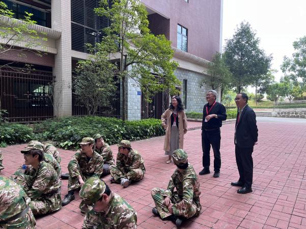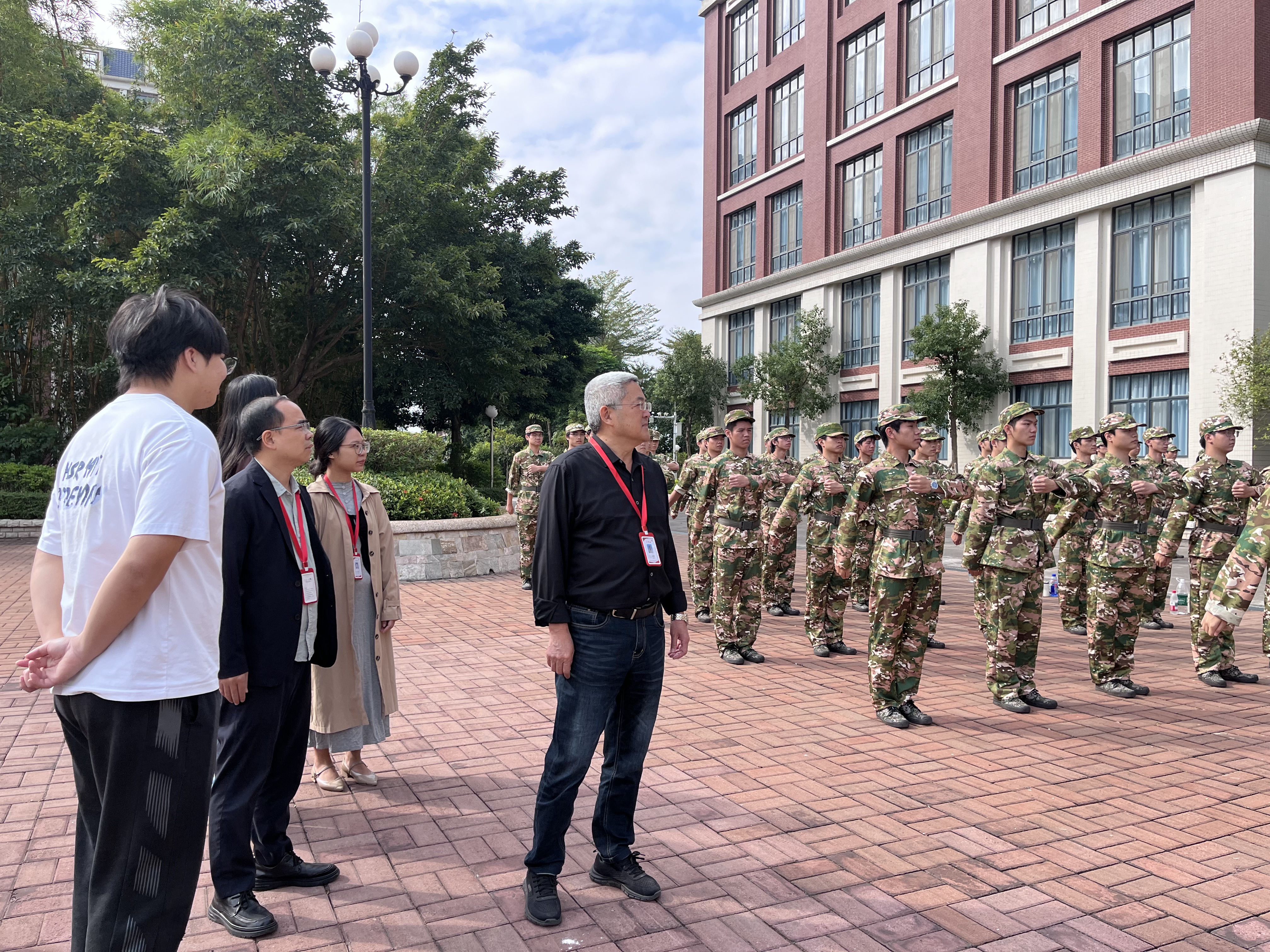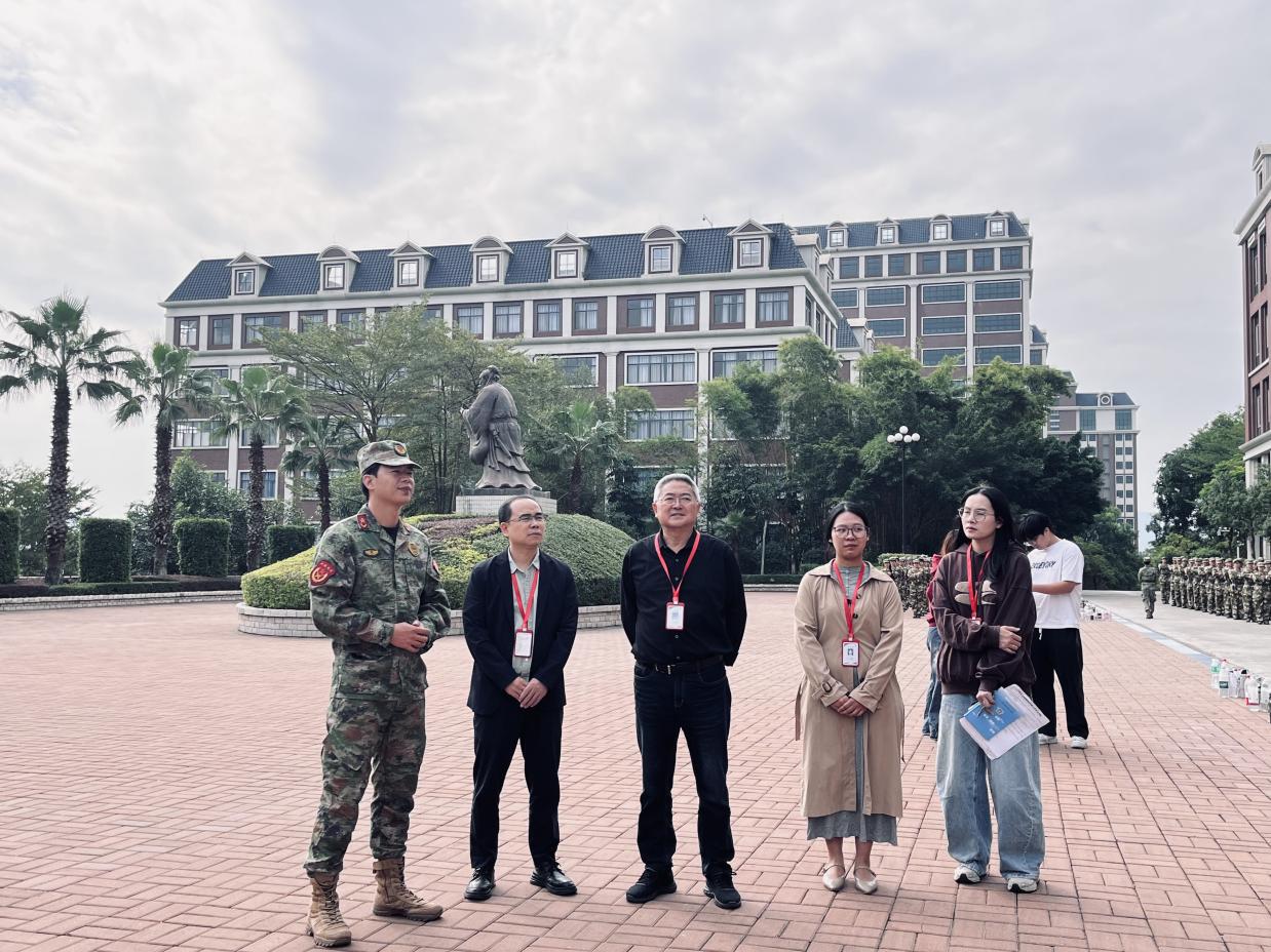期间,徐耀鉴院长与承训教官亲切交谈,详细询问军训计划安排、训练强度及学生适应情况,对教官们严格规范的训练和耐心细致的指导表示感谢。他叮嘱教官在保证训练质量的同时,关注学生身体状况,科学调整训练节奏,确保军训安全有序开展。