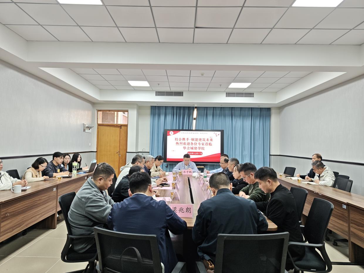 2025 年 12 月 17 日,广州华立科技职业学院城建学院与云浮市建设咨询行业协会联合举办 “校企携手・赋能建筑未来” 交流座谈会,会议由城建学院徐耀鉴院长组织。云浮市住房和城乡建设局总工程师罗云子、科长田庆辉,广东翔顺建筑设计有限公司院长兼协会会长许平及多家行业龙头企业负责人组成的专家团,与华立职院校长助理张剑锋、城建学院院长徐耀鉴、党总支书记/副院长吴毅强、院长助理马芳等骨干教师代表齐聚,共话装配式建筑行业趋势,共谋校企合作路径。