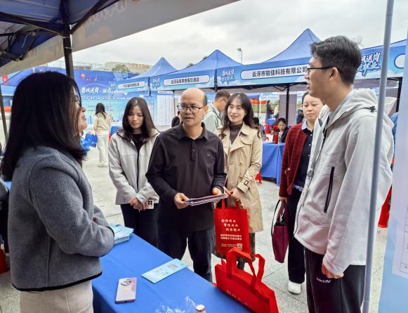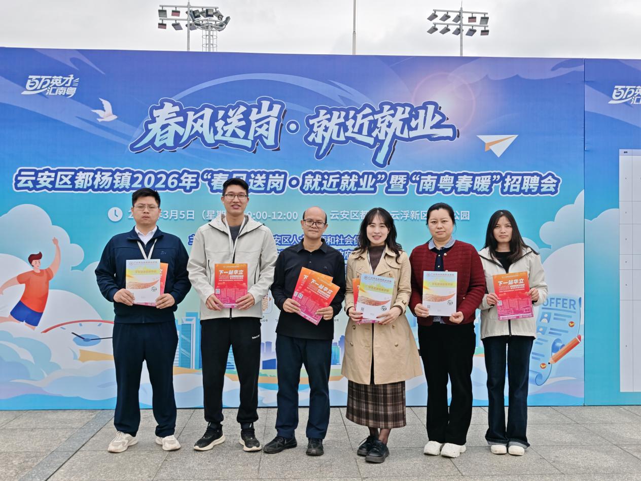 人勤春来早,奋斗正当时。为深入落实“百万英才汇南粤”行动计划,深化产教融合、精准对接企业人才需求,拓宽学子就业渠道,3月5日(农历正月十七),华立职院招就处副处长张雄,城建学院行政人事与招生就业副主任雷爱婷及骨干教师前往云浮新区文体公园广场参加云安区都杨镇2026年“春风送岗·就近就业”暨“南粤春暖”大型现场招聘会,开展访企拓岗专项工作。