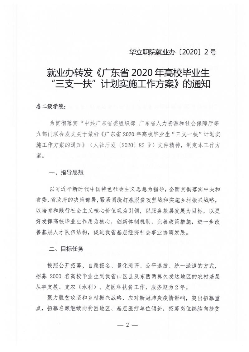 就业办转发2020年广东省高校毕业生“三支一扶“计划实施方案的通知,华立就业办【2020】2号附件.docx
