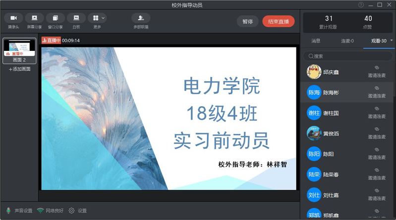 为进一步做好2018级学生校外实习工作以及推进我院校外教学工作顺利开展。由于指导老师上网课的原因,不能统一时间,电力学院相关领导老师于2020年4月27日下午15:00和16:30分别两场在企业微信视频会议召开2018级校外教学指导老师实习动员筹备会议。