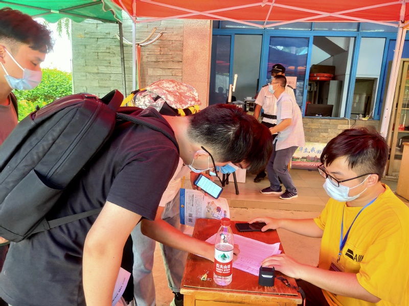 当天上午,学校的正大门早早搭起了帐篷,返校的学生入校需经过各个关卡,通过检测体温、查验葵花码、查看移动轨迹,对行李和身体表面消毒,查验学生身份和核对学生宿舍信息等多道程序,方能入校。