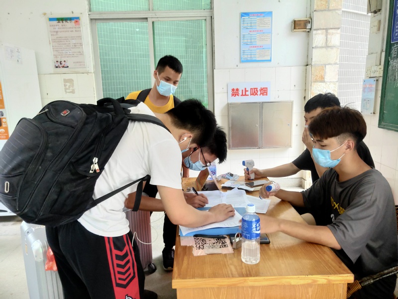 为确保学生安全返校,正常进入学校学习生活。广州华立科技职业学院执行校长马龙海、副校长高尧来、学校办公室主任朱少先、学生处副处长彭柳、电力与智能制造学院副院长曾祥彪等一行为首批返校学生带来了暖暖的问候。不仅亲自到校门口欢迎学生回家,而且深入到学生宿舍与已经返校的学生聊宿舍生活、聊网课、聊防疫。温暖的话语,亲切的关怀让归家的学子倍感贴心。