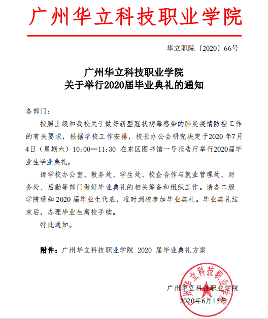 华立职院〔2020〕66号广州华立科技职业学院关于举行2020届毕业典礼的通知.pdf