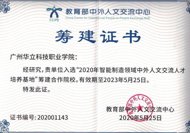 根据《关于实施智能制造领域中外人文交流人才培养基地项目的通知》(教育部人文中心函〔2019〕80号)要求精神,教育部在广东省包括暨南大学、广州大学、广东财经大学等高校筹建智能制造领域中外人文交流人才培养基地,我校是广东省唯一入选的民办高职院校。
