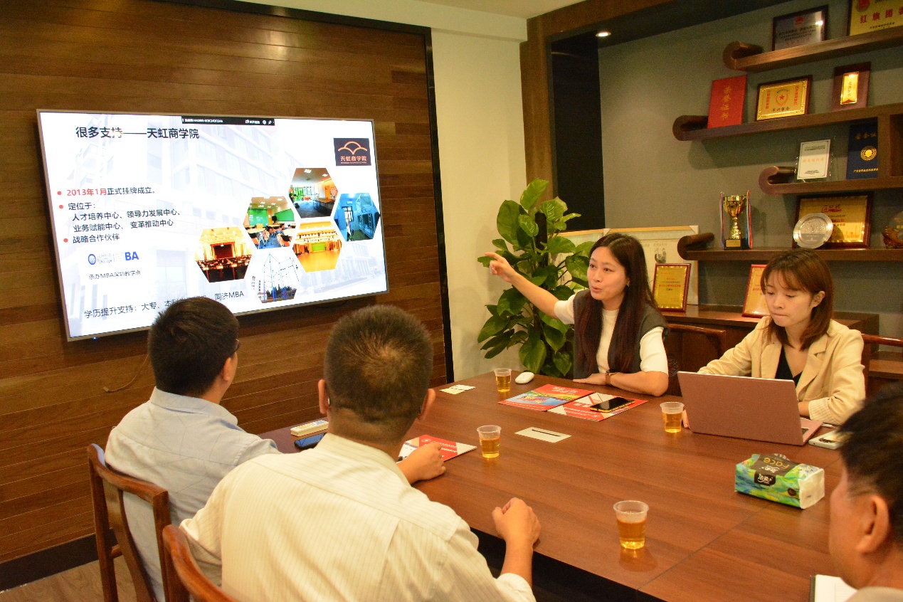 会上,李慧总监介绍了天虹数科商业股份有限公司(原“天虹商场股份有限公司”)基本情况,天虹股份是成立于1984年,是中航集团国有控股的上市公司,2010年上市。公司取得了卓越的业绩,已连续多年入围中国连锁百强企业,拥有全国领先的零售技术研发和运营能力。天虹根据目标顾客需求的不同,以百货、购物中心、超市、便利店四大业态线上线下融合的数字化、体验式新零售,打造以“亲和、信赖、享受生活”为核心价值的品牌,旗下拥有“天虹”、“君尚”、“sp@ce”、“微喔”四大品牌。 截至2020年10月8日,天虹在8省30市开设了购物中心28家、综合百货70家、超市108家、便利店187家。。希望通过与我校开展深度校企合作,以“兴趣班(订单班)、二级产业学院”等形式,共同培养国际化高素质技术技能型人才,满足高技术企业对高水平人才的需求。