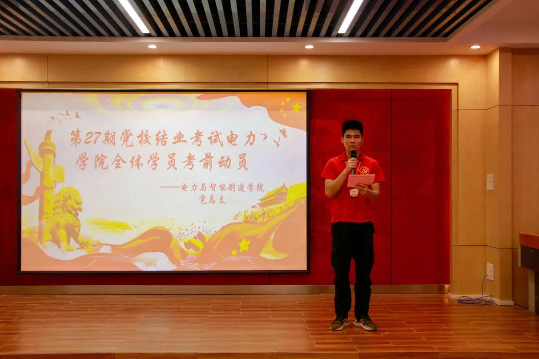 为了正确引导党校学员努力向党组织靠拢,加强党性意识,让学员能够有方向地备考并顺利地通过党校结业考试。电力与智能制造学院党总支于2020年11月17日下午17:40在科技楼五楼召开了第二十七期党校结业考试考前动员。参与本次会议人员有电力与智能制造学院党总支书记曾祥彪同志、电力与智能制造学院党总支副书记尹金凤同志、电力学院第27期党校学员以及电力学院党建小组全体成员。