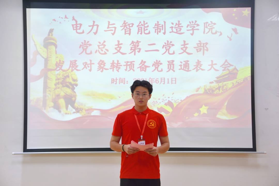 2021年6月1日15点45分,电力与智能制造学院党总支第二党支部在科技楼五楼会议室举行2021年上半年预备党员通表大会,大会讨论发展钟晓滢、李长路等25位同学为中共预备党员事宜。