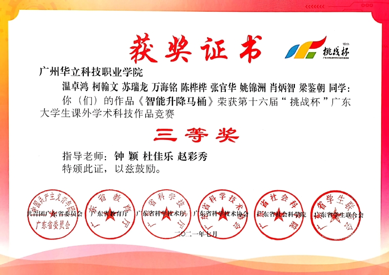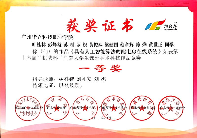 20217月,电力学院学子参加第十六届挑战杯广东大学生课外学术科技作品竞赛,共有4个团队通过学校评审,经过省专家网评,有2个项目入围终审决赛。717日至18日,由省团委、省教育厅、省科技厅、省科协、省社科院、省学联共同举办的第十六届挑战杯广东大学生课外学术科技作品竞赛终审决赛取得优异成绩。电力与智能制造学院学子不负众望,共获4个奖项,分别获得一等奖1项,二等奖1项,三等奖2项。