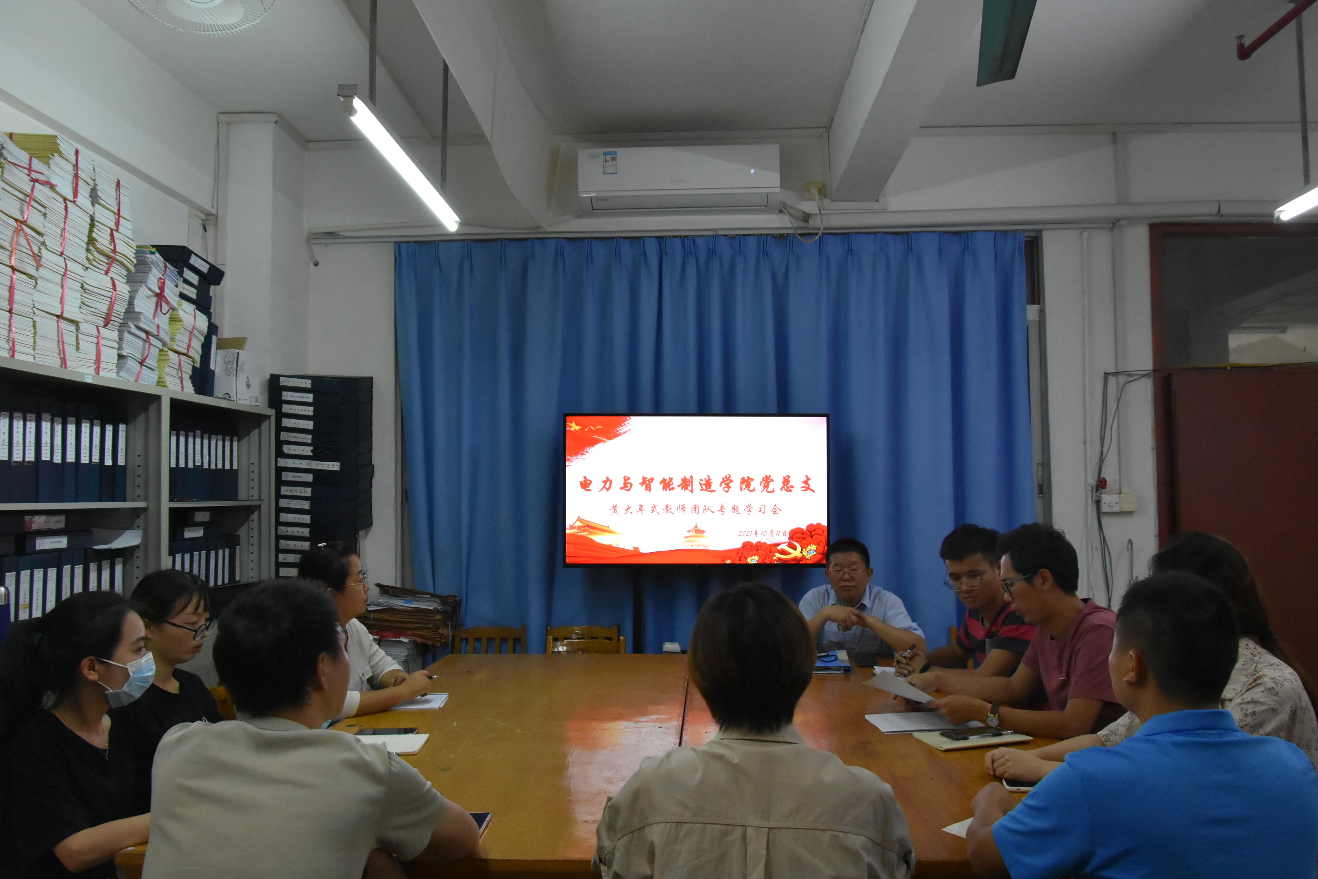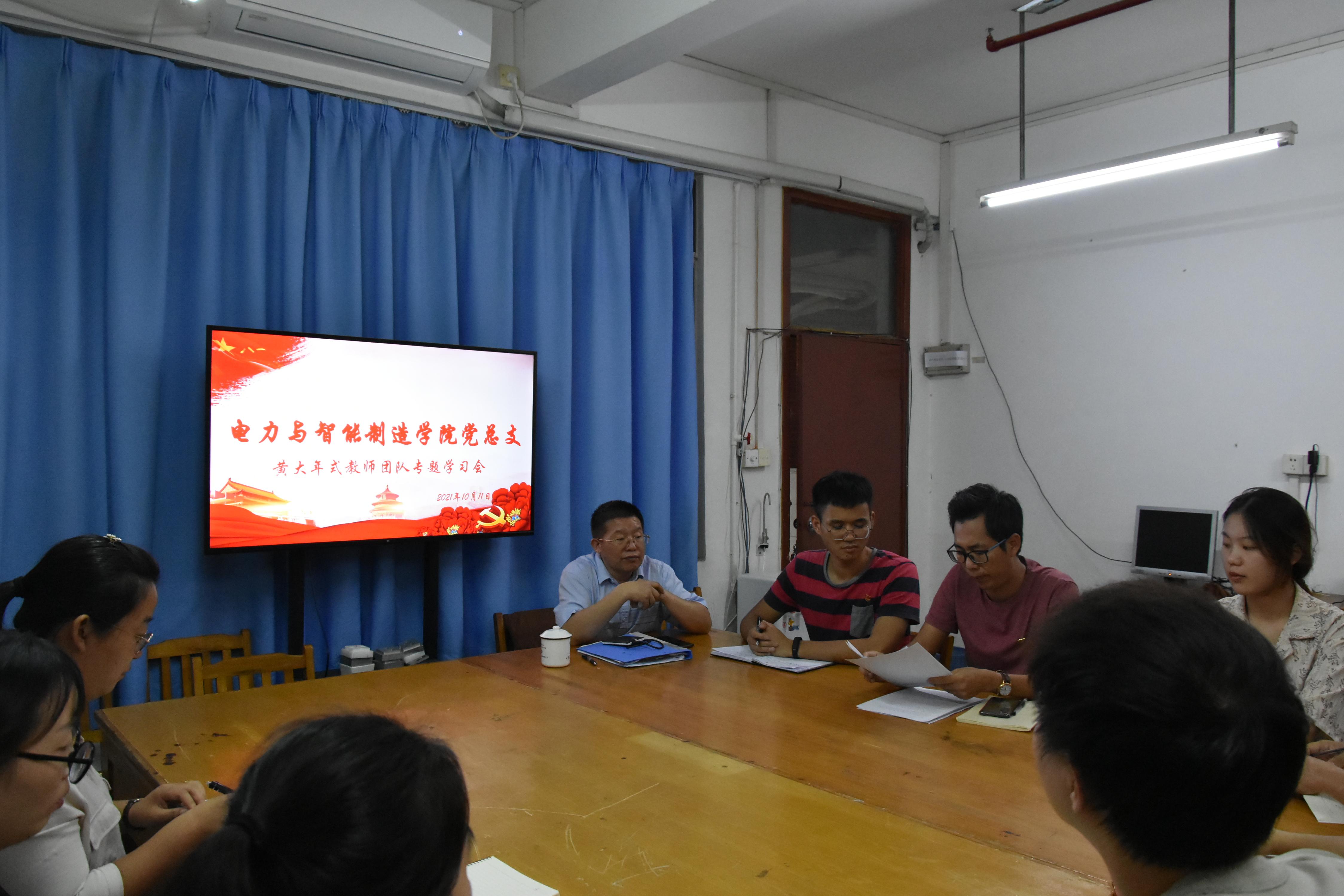 2021年10月12日下午,电力与智能制造学院党总支在综合楼202召开了“黄大年式教师团队”专题学习会。