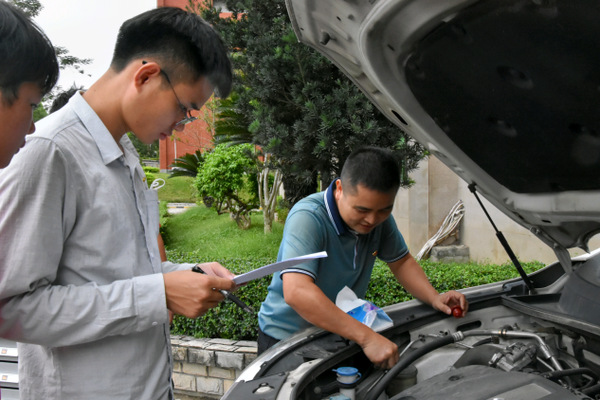 活动开始后,陆续有教师将车送来检测。汽车检测与维护活动负责的是郑理广同志、陆建明同志对车辆进行了认真、详细的检查,并记录好需要更换的部位,同时为车主提出了汽车维护建议。