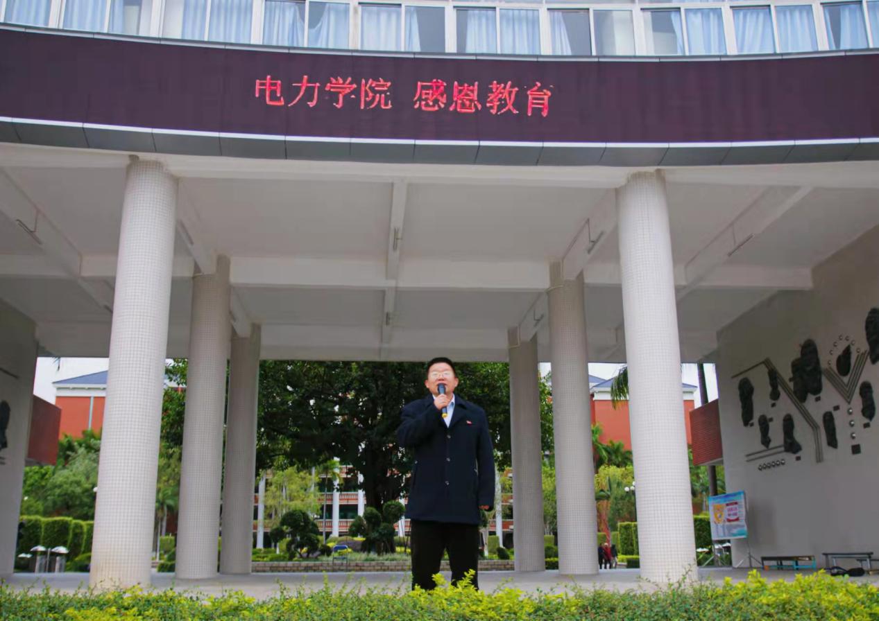 升旗结束后,由曾祥彪副院长为本次升旗仪式进行讲话,主题是:“感恩教育”。曾副院长提到: