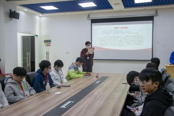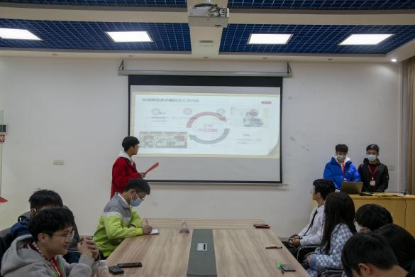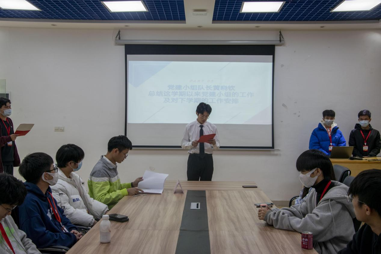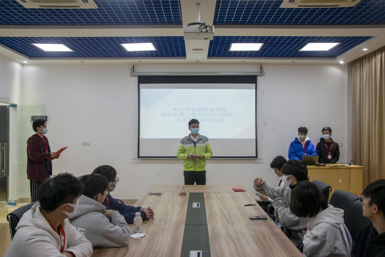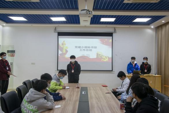 大会开始,党建小组队长黄晓钦上台做2021-2022年第一学期电力学院党总支党建小组的总结报告,总结了这一个学期党建小组配合电力学院党总支开展的各项党建工作,回顾本学期工作的同时,对下学期工作作出规划。