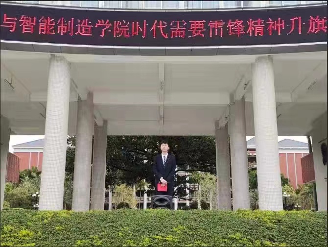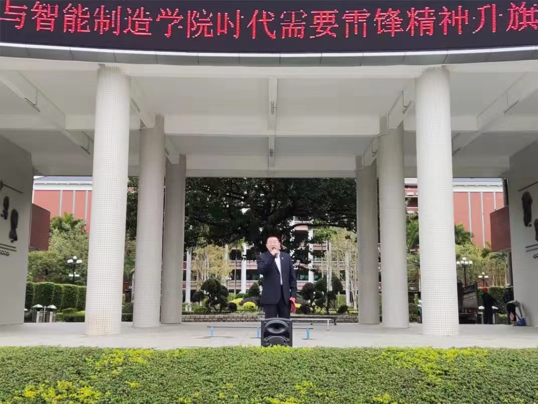 本次升旗仪式由电力学院曾祥彪副院长发言;曾副院长说到:“雷锋的一生,是把有限的生命投入到无限的为人民服务之中的一生。在新时代中国,在共产党领导下涌现出了一批又一批“新雷锋”。一辈子忠于党、全心全意为群众谋利益的杨善洲;创办免费女子高中,为落后山区的教育事业默默奉献的张桂梅;不顾个人安危而积极投身抗疫前线的医护人员;为北京冬奥会辛勤付出的2.7万名志愿者们……