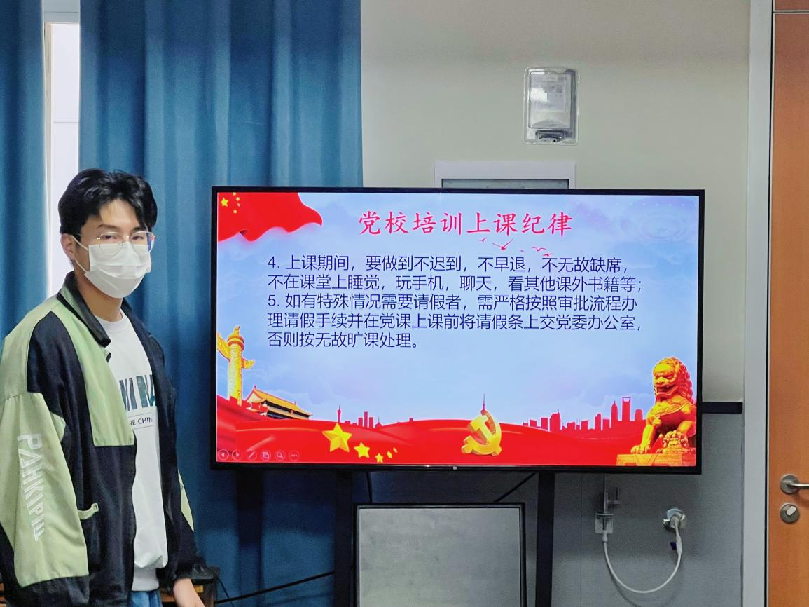 首先,党建小组队长黄晓钦发言并宣读党校培训课程安排表和上课纪律,详细讲述了本次党校的相关工作安排,包括党校培训的课程安排、党课注意事项、党校专题讨论会的流程等。学员们应当严格遵守纪律,以饱满的热情上课,认真做好笔记,为党校考试做好准备。同时,还要注意着装问题,学员代表的不仅是个人,更是学院的形象。一定要牢记自己的初心,认真对待党校培训和考试,不要出现迟到、早退、旷课、考试作弊等情况。