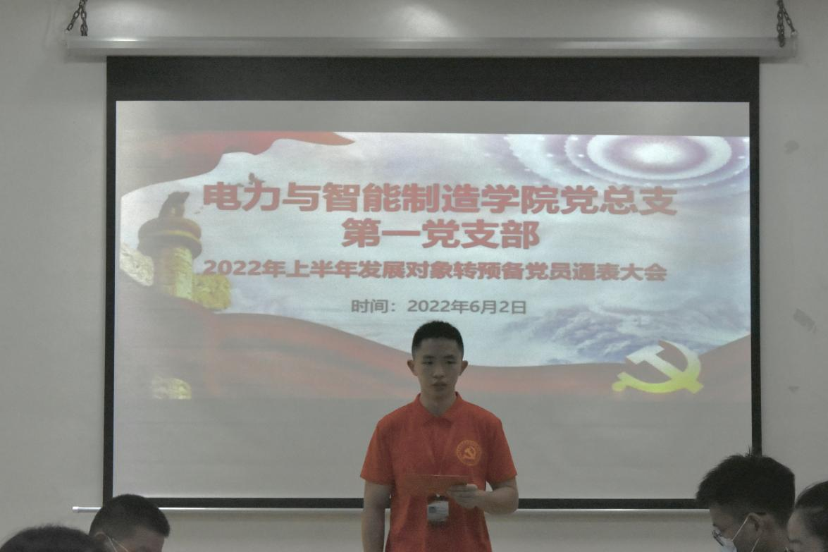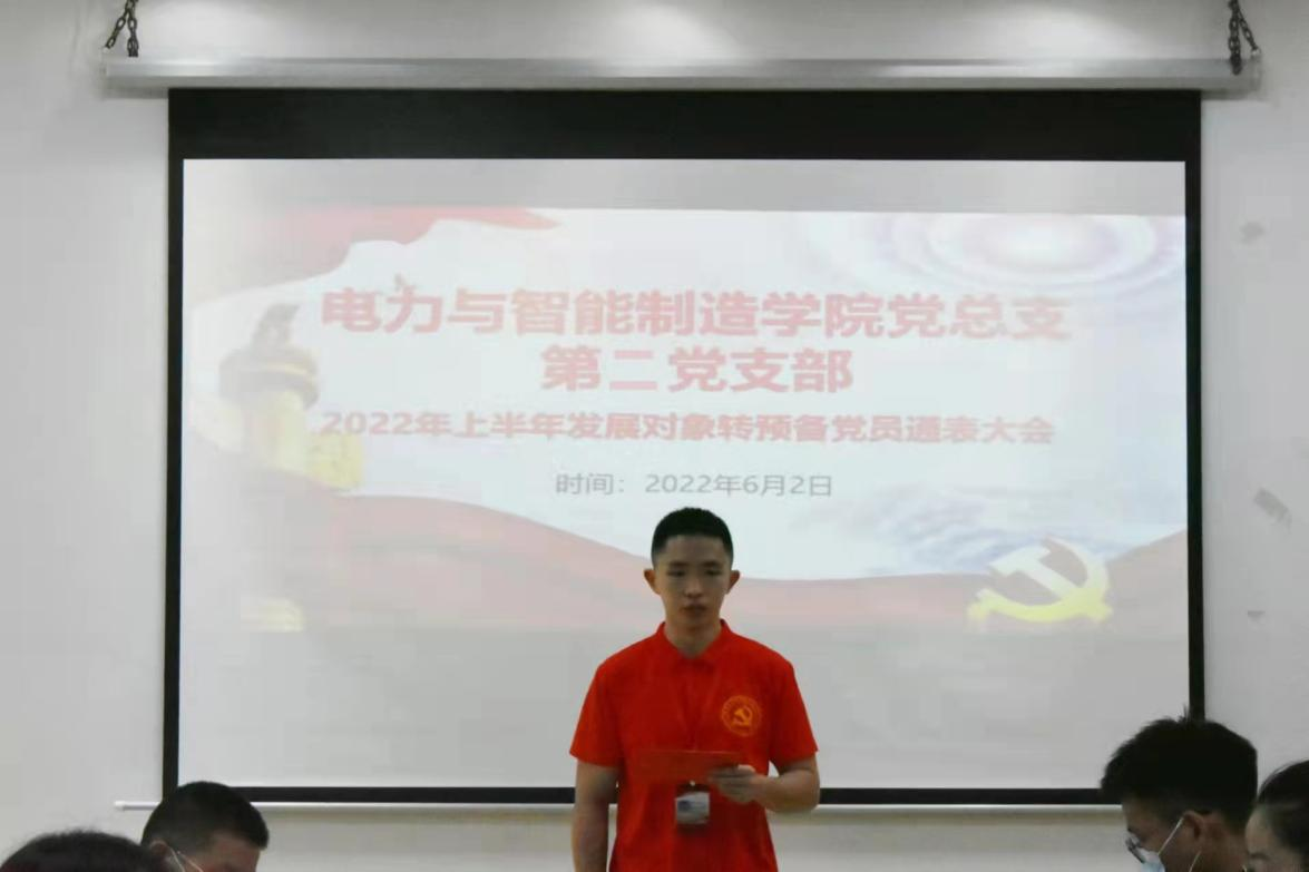 2022年6月2日上午,电力与智能制造学院党总支在科技楼五楼召开了2022年上半年发展对象转预备党员通表大会,大会讨论发展卢丽华等四位发展对象为预备党员事宜。