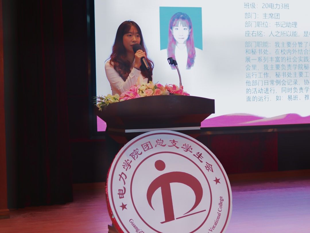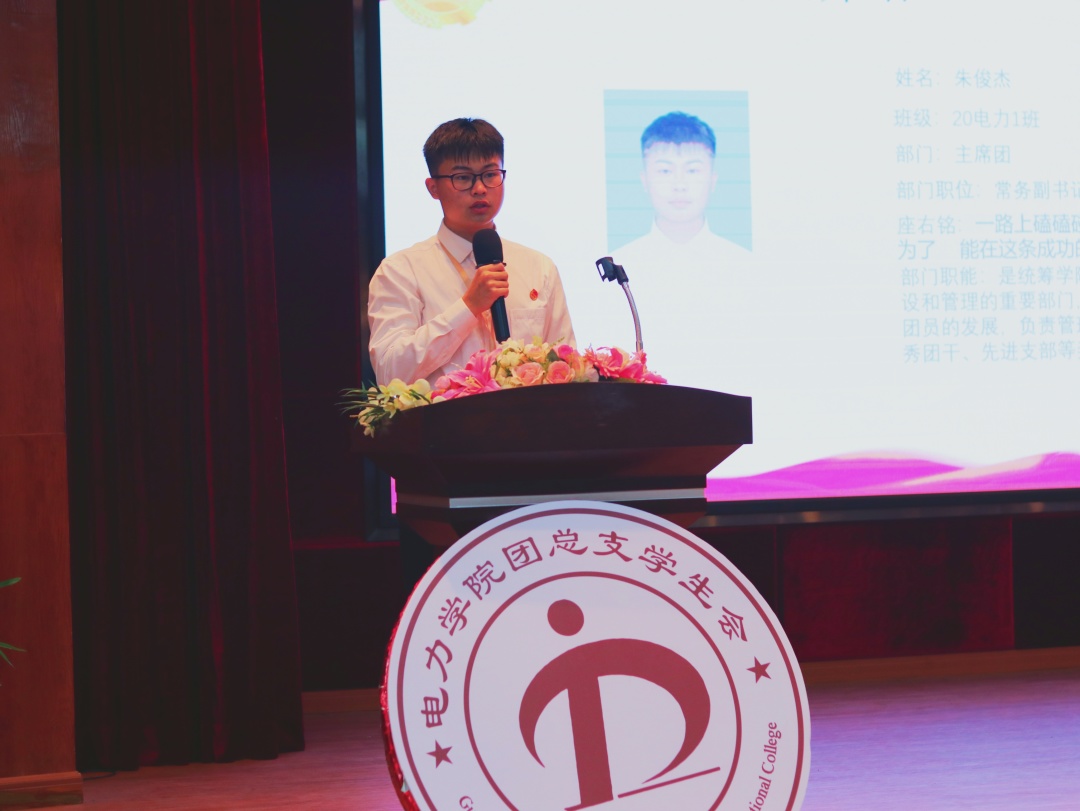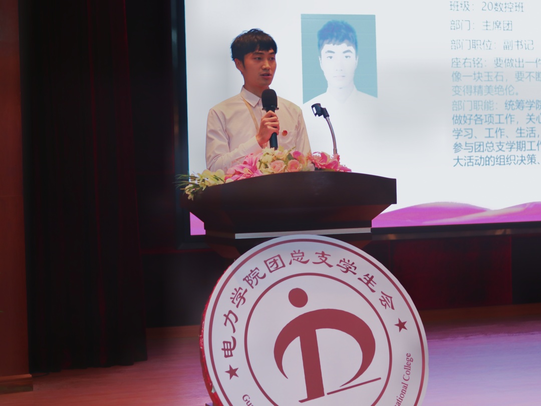 回顾本学期以来在团总支学生会的工作,言语中流露了对两年在组织工作的怀念,并感谢学院领导老师对团总支学生会工作支持,对电力与智能制造学院团总支书记钟颖老师的耐心教导以及全体团总支学生会成员在这学期来对团总支学生会工作付出的努力表示感谢。在肯定全体部门负责人及实习生在活动中展现优点的同时指出现工作中存在问题并提出解决办法。也对新一届团总支学生会成员寄予深厚的期望!