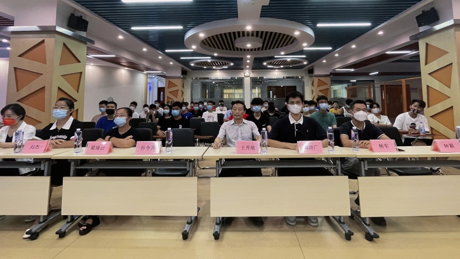 新的篇章,开启新的希望!新的空白,承载新的梦想!在秋高气爽的日子里,我院喜迎2022级新生。为引导新同学尽快融入新环境,适应新生活,我院于9月6日在科技楼五楼大厅采取“线上+线下”结合的方式举行了新生入学教育大会。学院院长王秀敏老师,学院主任孙令真老师、学管副主任郑理广老师、行政人事副主任梁瑞云老师、校内教学副主任刘杰老师、校外教学副主任杨军老师、团总支书记兼22级电力专业辅导员钟颖老师、22级汽车专业辅导员赵彩秀老师出席会议。
