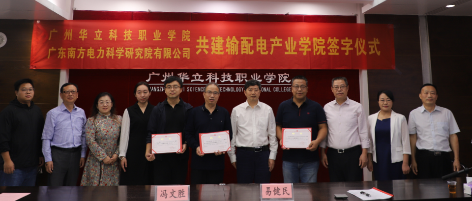 在10月18日下午,广州华立科技职业学院与广东南方电力科学研究院有限公司合作共建“输配电产业学院”签字仪式,在职院行政楼305举行。参加这次签字仪式的有广东南方电力科学研究院有限公司冯文胜董事长、培训中心蚁毓菁主任、周志良技术主任、吕少锋主任助理、广州华立科技职业学院校长易健民教授、副校长陈显强教授、教务处吴青峰处长、产教融合办刘宇赤主任、校企处钟文浩处长、电力与智能制造学院王秀敏院长、产教融合办陈茜副主任。签字仪式由陈显强副校长主持。