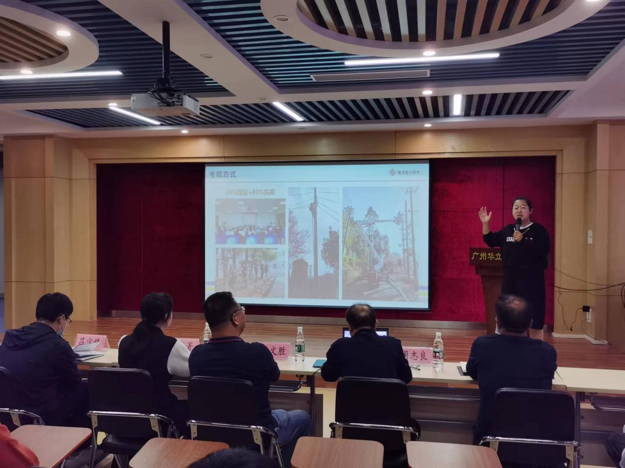 首先,校内教学副主任刘杰对广东南方电力科学研究院专家们的到来表示热烈欢迎,并隆重介绍了广东南方电力科学研究院各位专家。广东南方电力科学研究院是广东省科学技术厅批准成立,主要从事电力科研,高新技术产品开发与应用推广,电力工程设计、安装、试验、维护、检修、节能技术改造等电力客户服务,以及电力职业培训、技能鉴定、职称评定、继续教育、人才测评、岗位培训等培训教育业务。目前广东南方电力科学研究院有10千伏不停电作业、用户侧微电网工程应用、电能交易区块链应用等三个职业技能等级标准和证书入选教育部1+X证书制度试点。