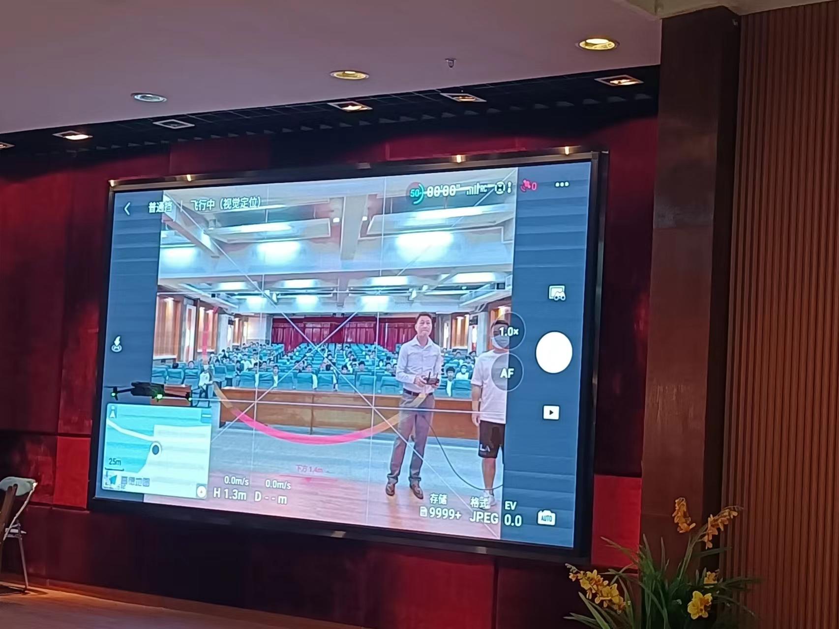 郑总经理通过图片、视频、实物展示等多样的途径,让学生们了解了关于无人机的知识。同时还通过无人机摄影技术与全体同学做了合影。