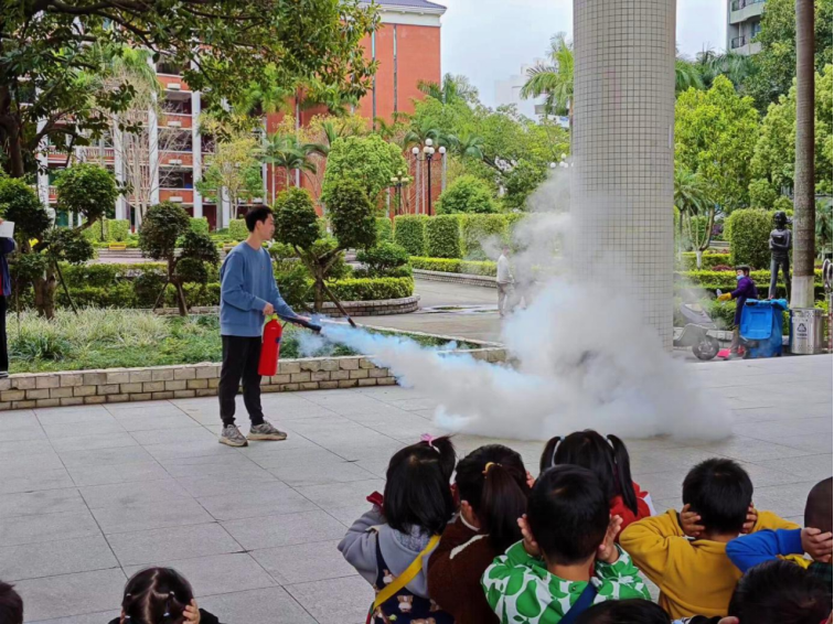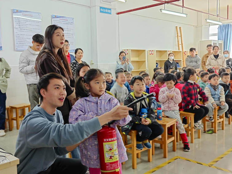 在综合楼405教室中,林祥智老师为小朋友们详细介绍了灭火器的种类、作用、使用方法及使用场景,并为小朋友们演示了发生起火时该怎么去处理灭火方式,让小朋友们进一步了解灭火器的原理和使用方法。告诉小朋友一定不能玩火,认识安全逃跑通道标识等安全知识,并让小朋友们知道一旦发生了火灾,要拨打119报警电话。