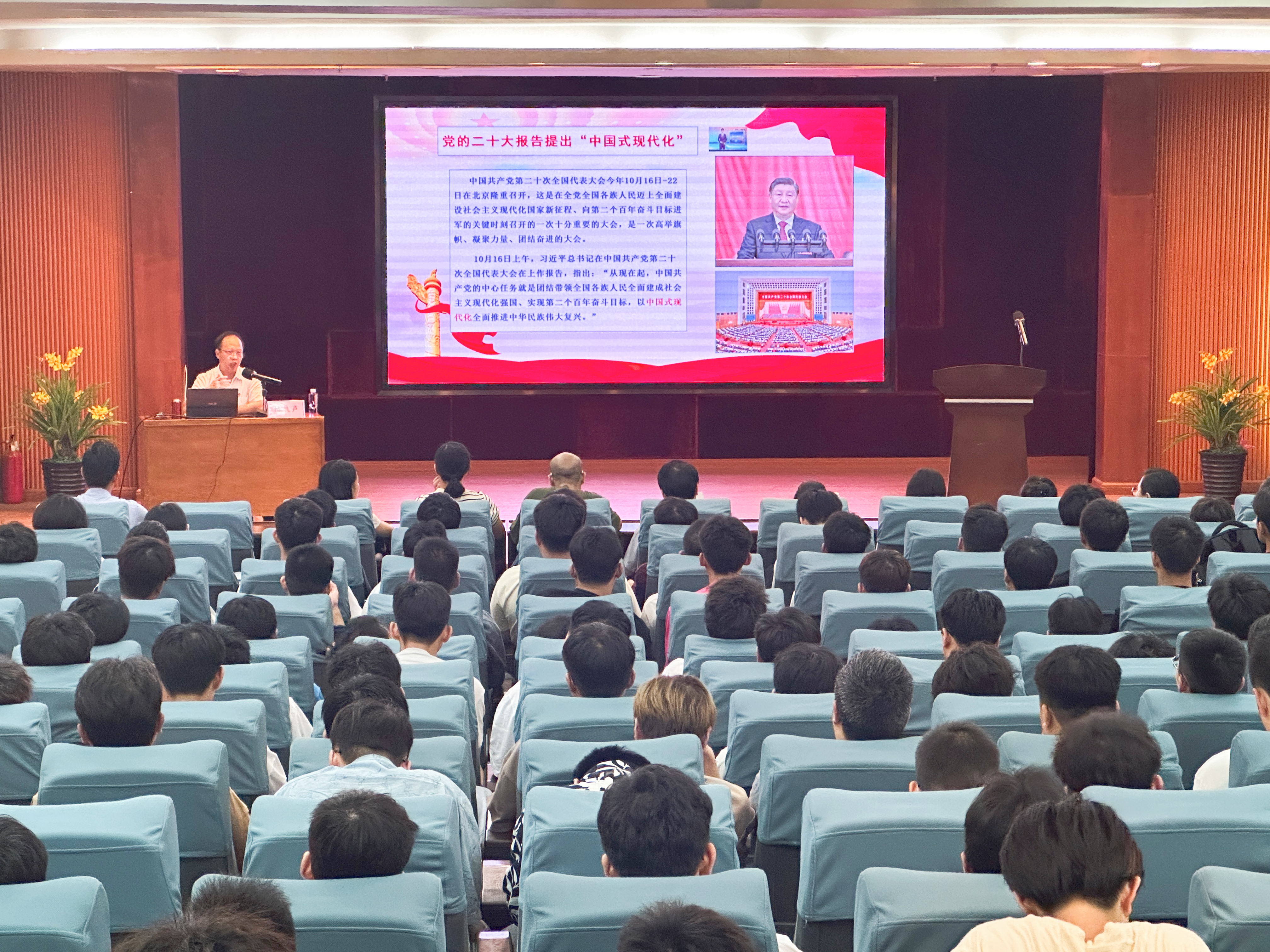 讲座围绕“中国式现代化的探索历程、中国式现代化的中国特色、中国式现代化的本质要求、中国式现代化的战略支撑、大学生在新征程奋发成才”五个方面展开。陈良声以宽广深邃的大历史观,对中国式现代化进行了深入解读、深刻阐释。他结合近百年来复杂的国际和国内环境,深刻论述了“为什么要推进中国式现代化”及其必要性和重要意义。结合中国式现代化的“中国特色”和“本质要求”这两个重点,陈良声向同学们深入细致地讲解“什么是中国式现代化”,帮助大家更清晰地理解中国式现代化的内在逻辑、主要特征和丰富内涵,引导同学们坚定理想信念,深刻理解新时代新青年的历史使命,进一步激发他们在中国式现代化新征程上的担当和热情。