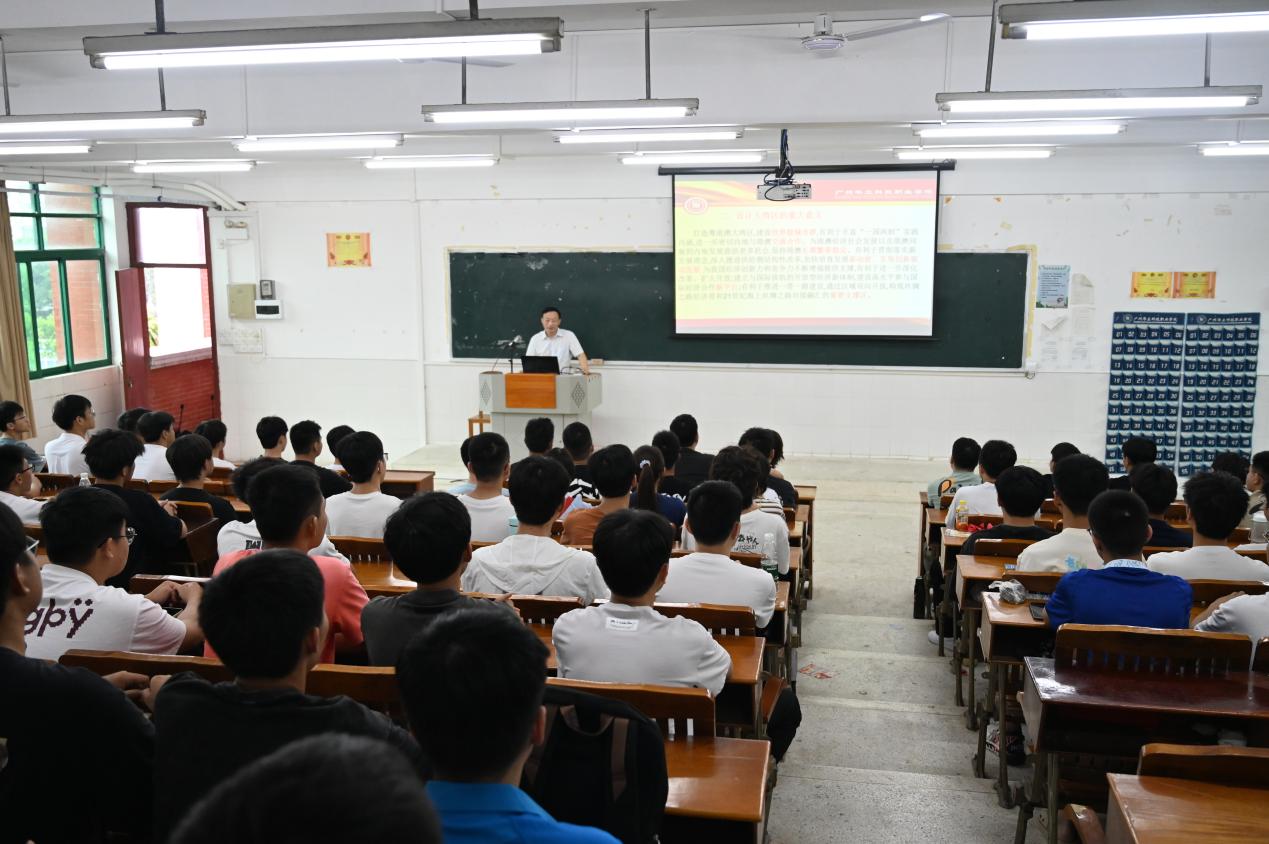 2023年9月8日上午于图书馆401教室,电力与智能制造学院院长王秀敏以“学习贯彻党的二十大精神,坚持专业群对接产业推动大湾区智能制造高质量发展”为主题,为2023级新生讲授了思政第一课。