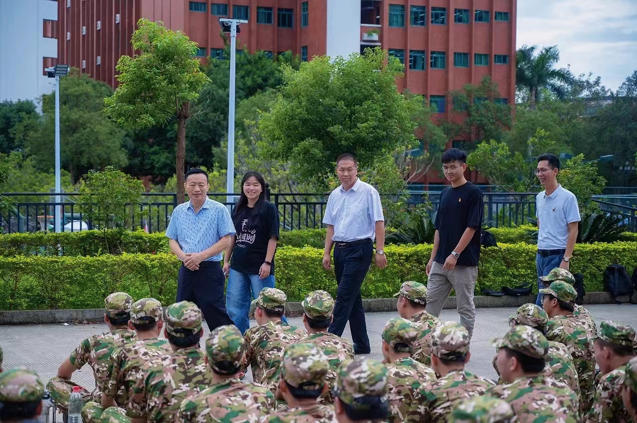 2023年9月14日上午,电力与智能制造学院院长王秀敏、党总支书记孙令真、副院长褚玉峰、学管副主任郑理广同志前往军训现场,看望慰问正在军训的2023级新生。