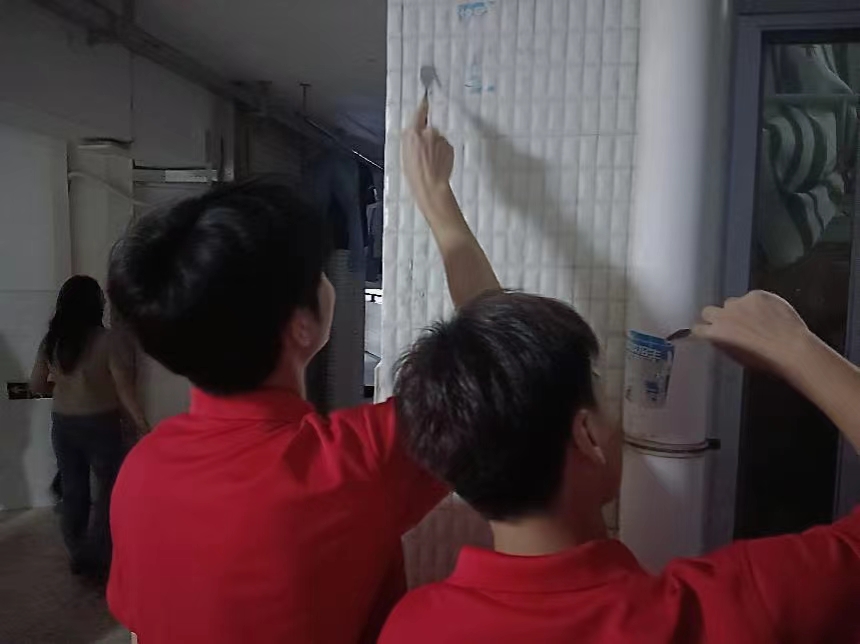 本次清理活动主要围绕宿舍环境卫生、清理墙面广告等方面进行整改。在整改的过程中钟颖老师向同学们讲解保持宿舍卫生干净的必要性,同时小伙伴们手拿小铲子对在宿舍走廊墙面中的广告进行铲除,且对于宿舍中存在的卫生整洁问题做出了处理。