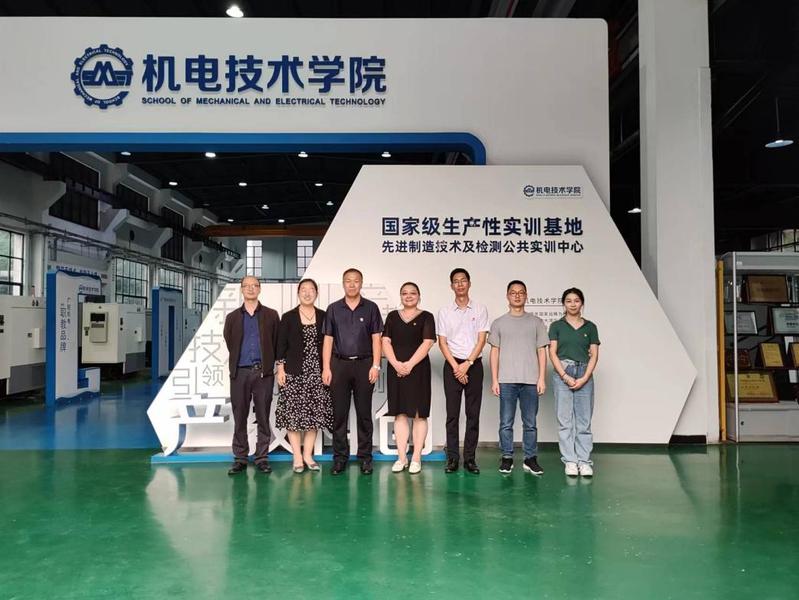 随后,赵荣副书记带领褚玉峰书记一行人来到机电技术学院国家级生产性实训基地参观学习。赵书记详细介绍了实训基地的实训项目、科研成果以及各个成果背后的故事。