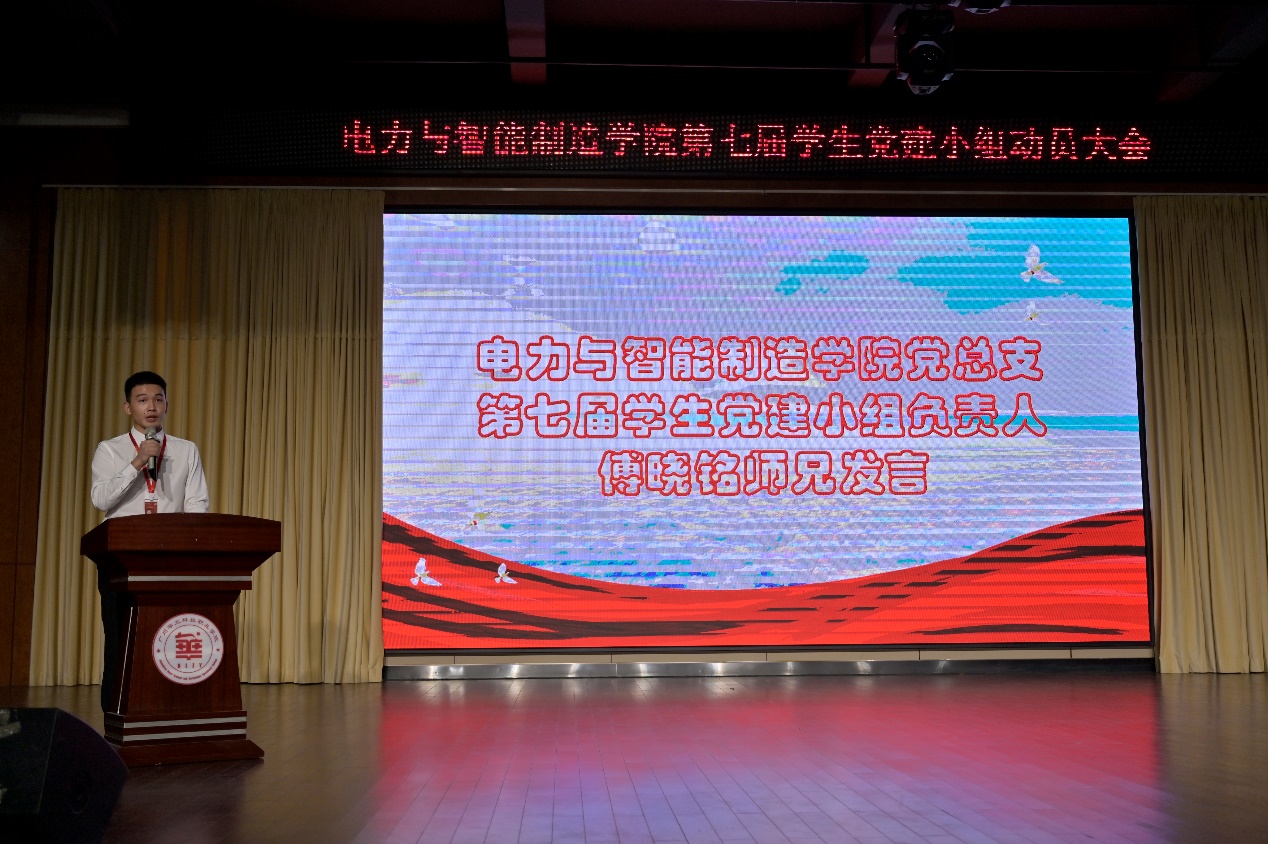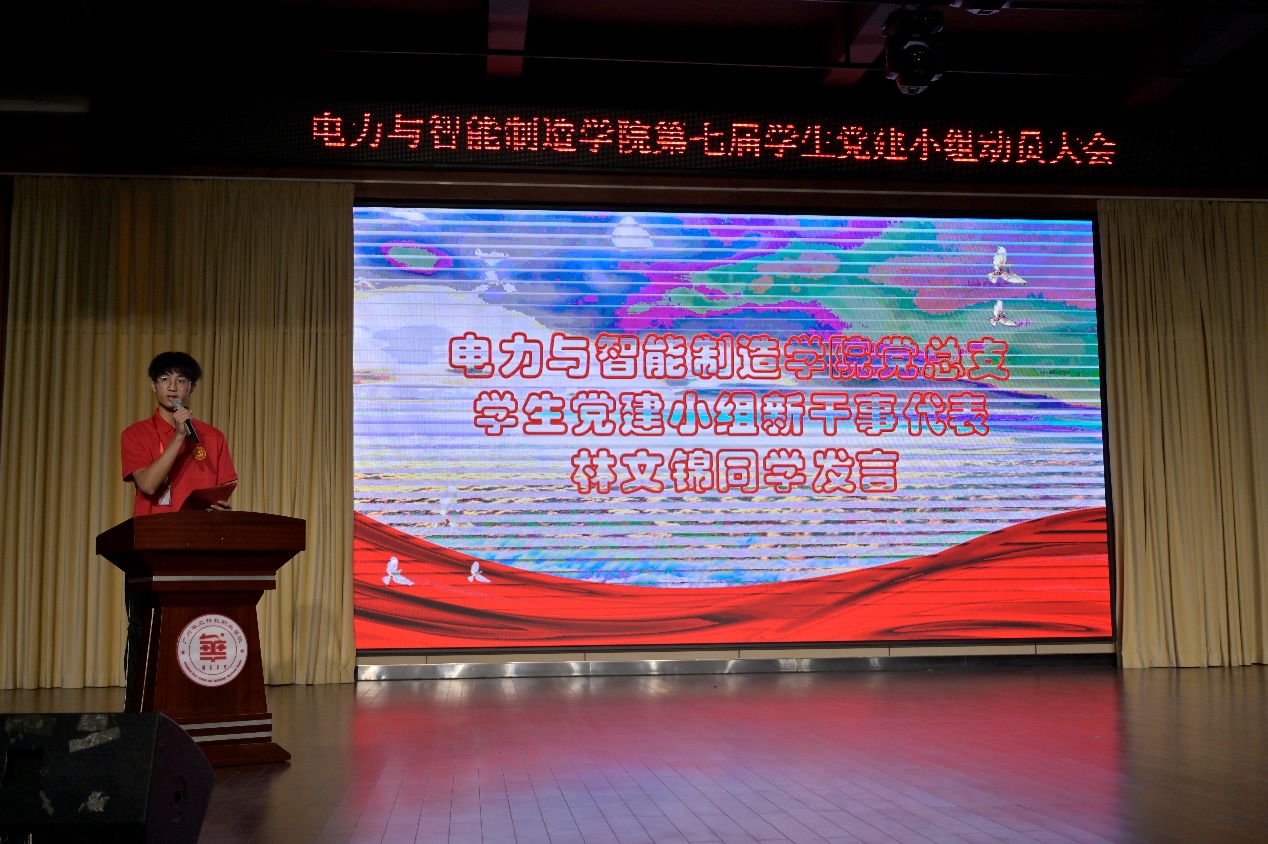电力与智能制造学院党总支第七届学生党建小组总负责人傅晓铭师兄、以及第七届学生党建小组新干事代表林文锦同学二人进行发言。