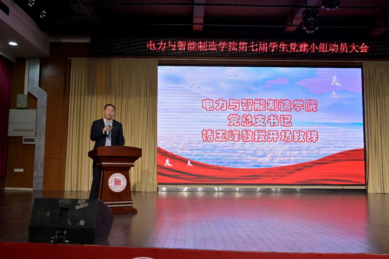 首先,学院党总支书记褚玉峰致辞,他在致辞中对学院上一届党建小组的工作给予了充分肯定,并对第七届党建小组成员的工作提出要求,他希望同学们切实发挥作用,树立共产主义理想信念,团结带领广大同学坚定不移听党话、跟党走,怀抱理想又脚踏实地,敢想敢为又善作善成,立志做有理想、敢担当、能吃苦、肯奋斗的新时代大学生。