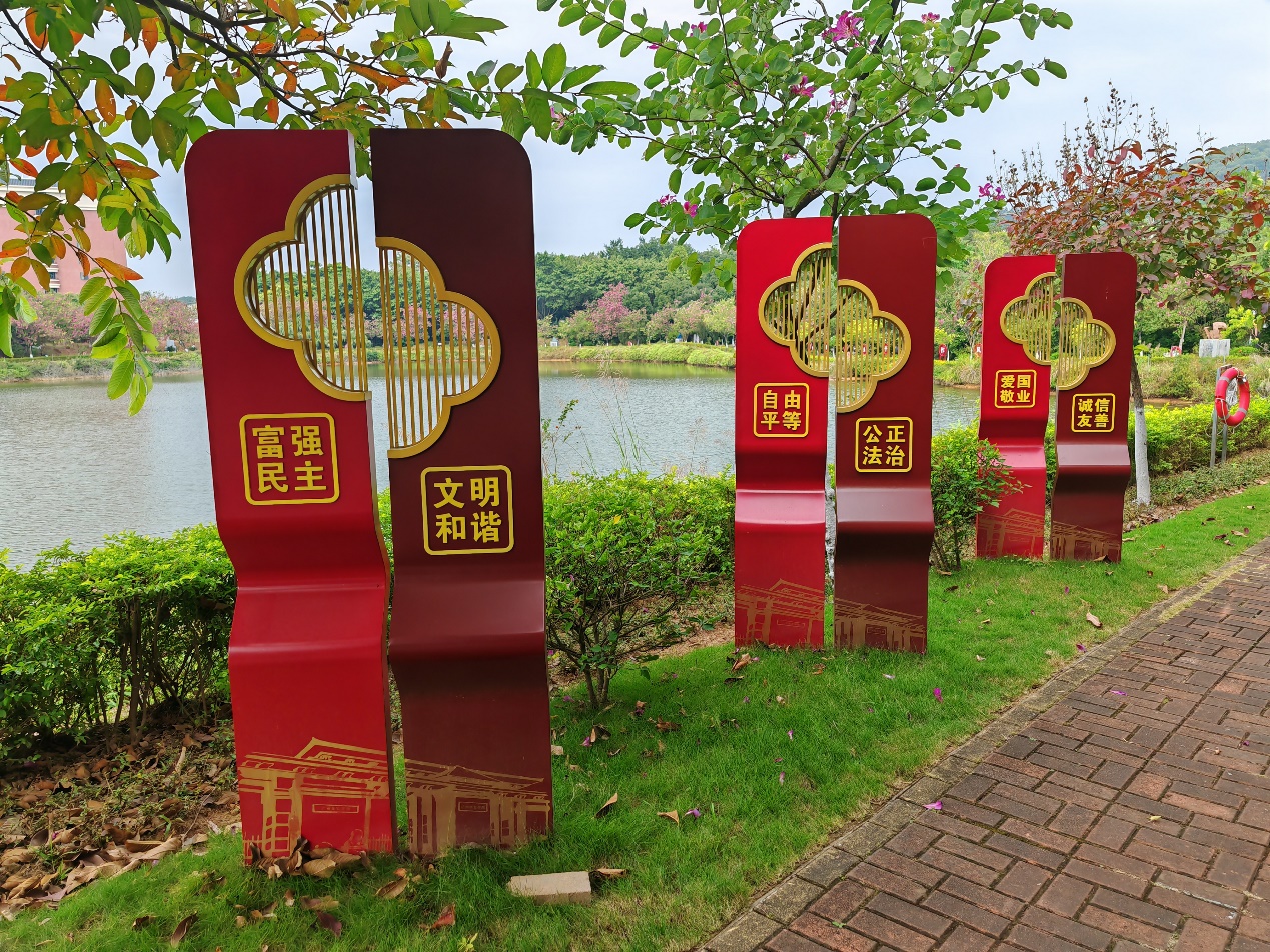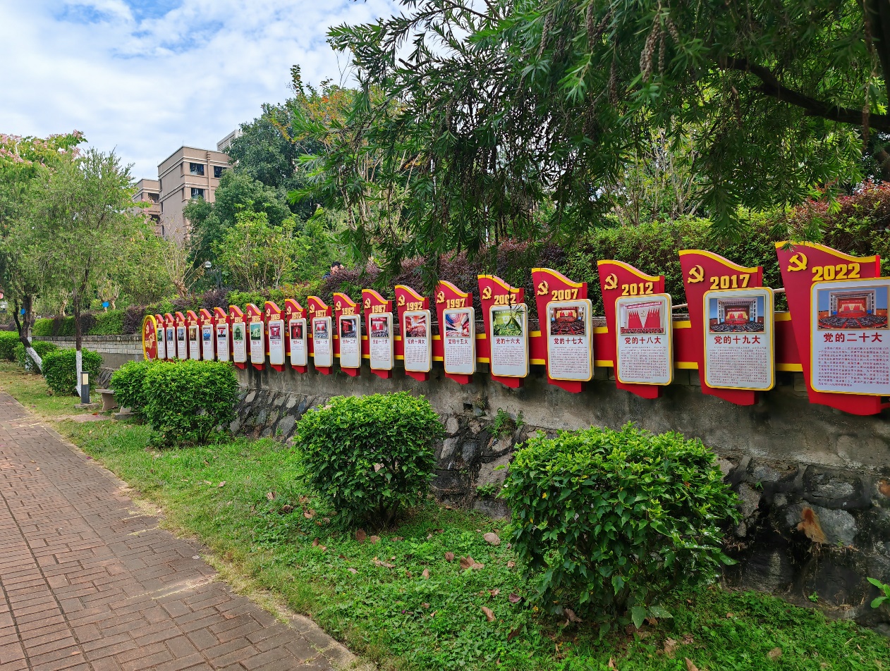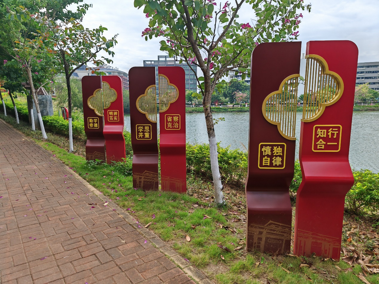 历史的卷轴在砥砺前行中铺展,时代的华章在不懈奋斗中书写。在我校美丽的华立湖周边林荫小路旁的文化,在春风化雨般滋润着华立学子的心田。