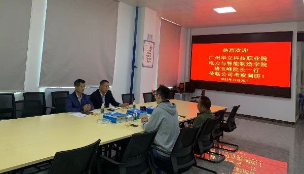 广州长仁工业科技有限公司行政经理符传胜、运营经理冯创志、人事主管李奕荣,对学院的来访表示了热烈的欢迎,带领参观后,在会议室进行详细了交流。广州长仁工业科技有限公司行政经理符传胜详细地介绍了公司的经营范围、科研能力、人才需求等方面情况。褚玉峰院长介绍了学校的发展及电力与智能制造学院的专业建设情况。双方就下一步建立校企合作关系进行深入的交流。
