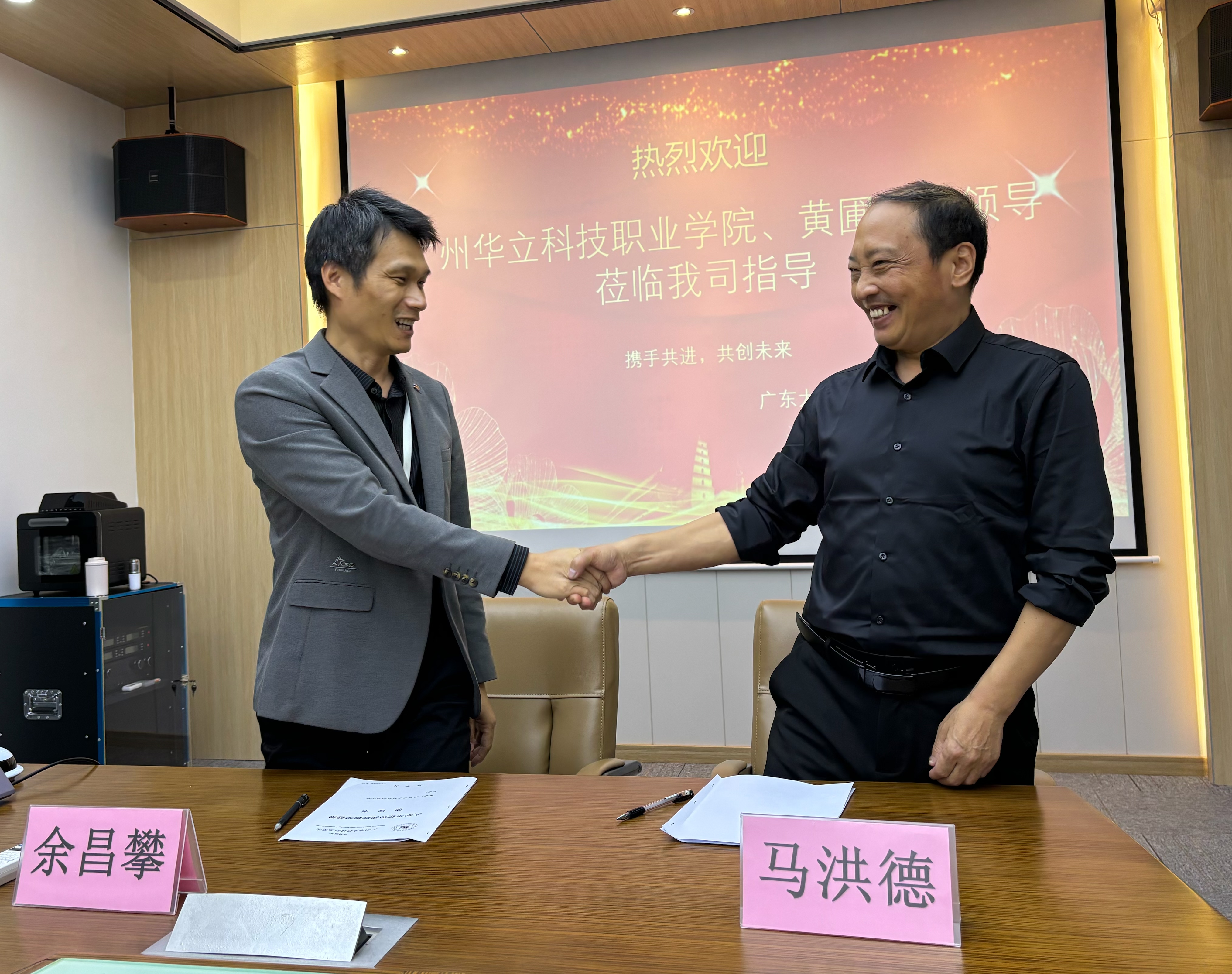 在会上人社局黄圃分局黄永健局长及大王椰副总经理余昌攀对校方到中山企业走访表示热烈欢迎,并希望双方在本次调研活动中出成果。
